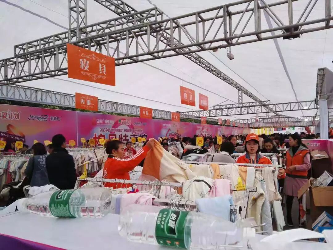 下午,我们从博览会负责人向经理处了解到,从早上八点半开始,展位上消费者就蜂拥而至,一直到下午也不见人流减少,现场上百名工作人员几乎都应接不暇,原本堆成“小山”般的货品,几乎售罄,展台上的各种服饰、用品、奶粉、礼品等只剩下寥寥而已,更多的货品正从仓储一件件的运送到展馆现场。