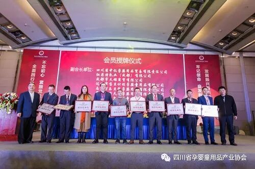 成立大会上,隆重举行了会员授牌仪式。陈放主席为会长单位授牌,孙宁副主席、朱华忠副主席为副会长单位授牌,廉南秘书长、林舸处长为第一届理事单位、监事单位授牌,兄弟商协会领导和嘉宾为会员单位授牌。协会首批会员单位共70家,他们来自四川各地,在当地孕婴童领域无论从体量、效益和影响力都处于排头兵或前列位置,其业务覆盖四川省21个地级行政区划中的19个、183个县级行政区域中的168个,业务覆盖率分别达到90.48%和91.80%,具有充分的广泛性和代表性。