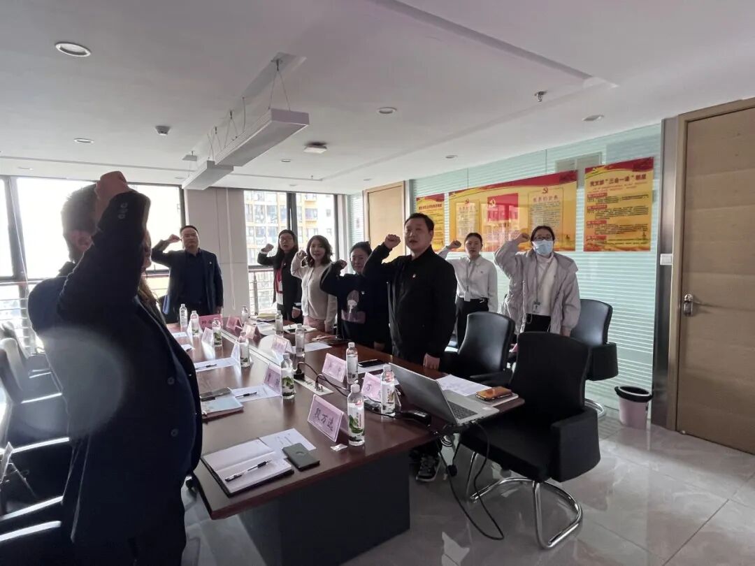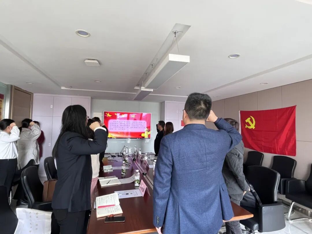 会议开始,全体起立,共同奏唱国歌,重温入党誓词。嘹亮高亢的歌声表达爱国敬党的初心,铿锵有力、掷地有声的入党誓词,时刻警醒着大家奋勇拼搏、砥砺前行。