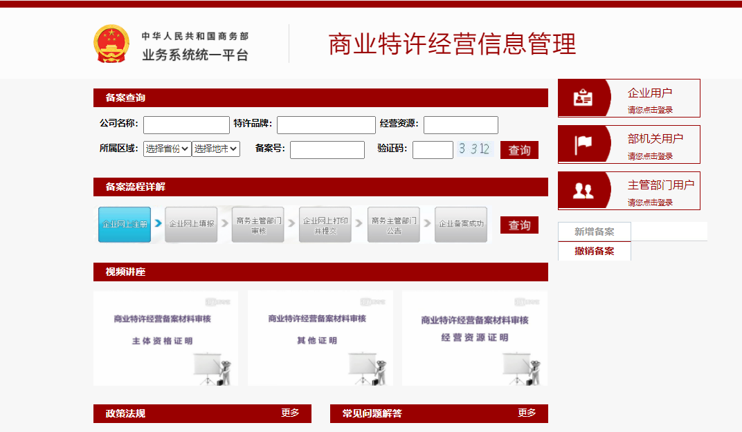 登录商务部《商业特许经营信息管理》网址: