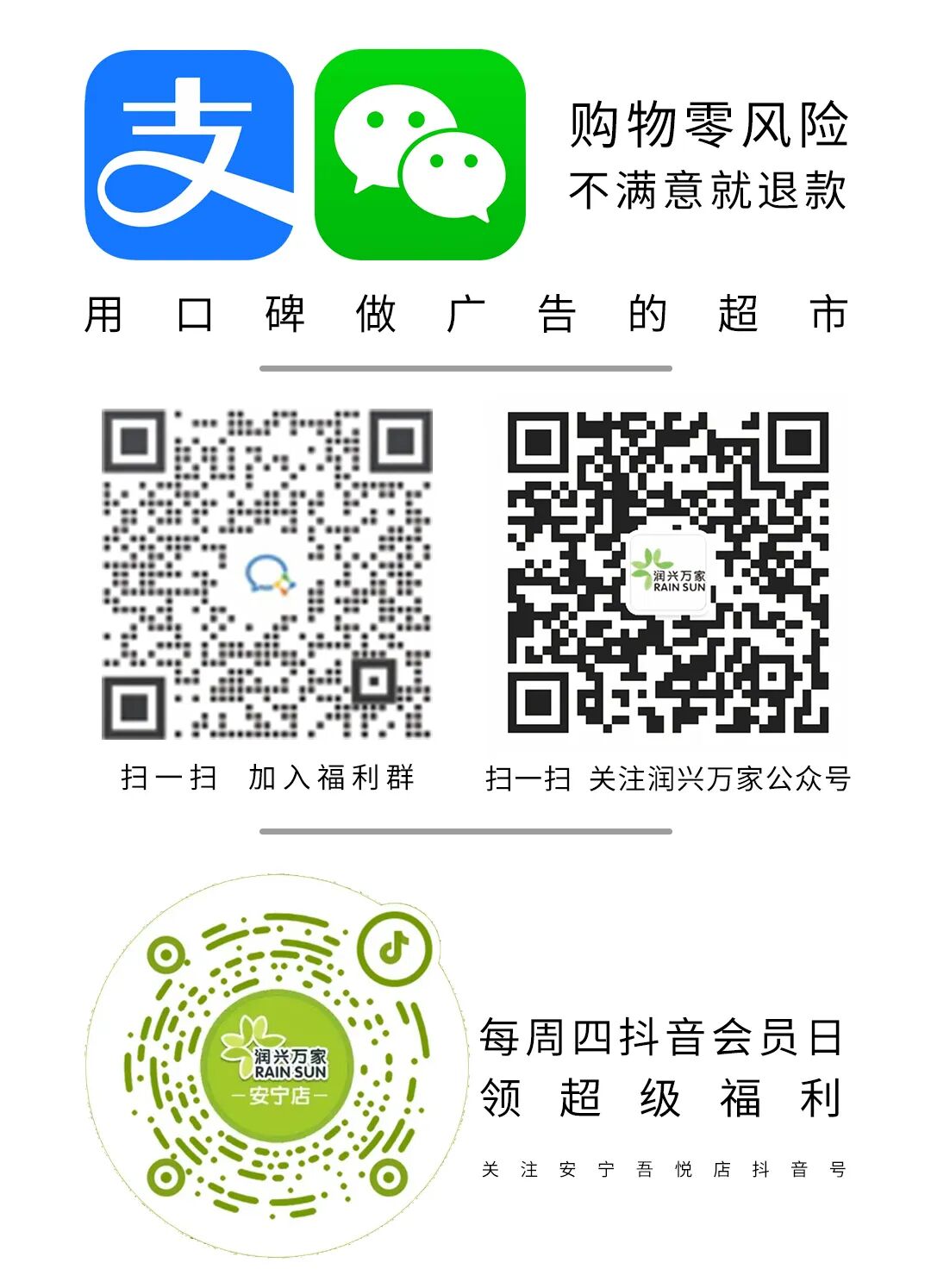 润兴万家生活超市 带给您幸福的超市点击题目下方蓝字关注 润兴万家温馨提示:卖场还有更多商品供您选购!如若图片价格有误,以店内价格