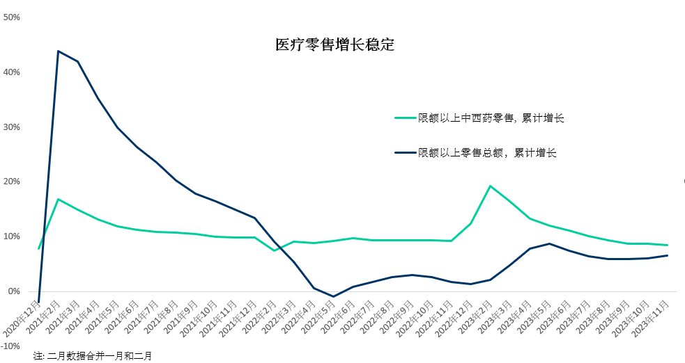 受新冠疫情影响,零售药房销量的稳定增长已逐渐成为常态。国家统计局的限额以上单位商品零售数据也证明了这一点。过去三年,中西药用品的销售额比零售总额增长更稳定。如果说疫情教会了消费者什么,那其中之一就是随时更新和补充家庭医药物资储备。