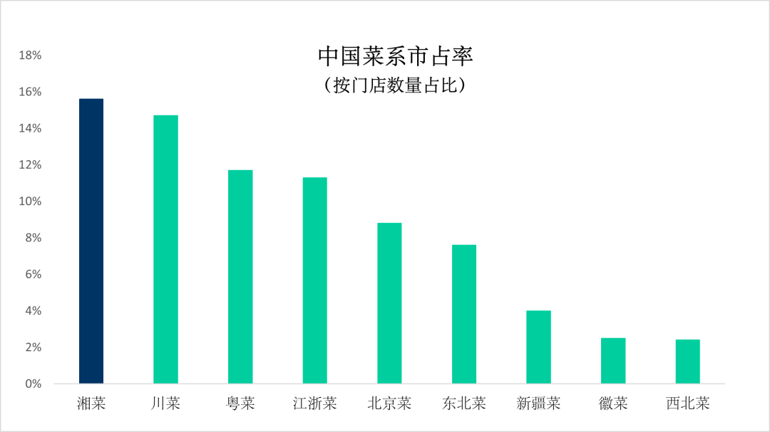 湘菜是中国八大菜系之一,以麻辣鲜香著称。根据红餐网的餐饮数据,2023 年湘菜市场规模将达2264 亿元人民币,同比增长 33.6%。近年来,多个连锁湘菜品牌快速拓店,市场规模增速高于整体中式正餐。据统计,截至2023年9月,全国湘菜门店数达到11.8万余家,在中式正餐门店总数中占比最高。