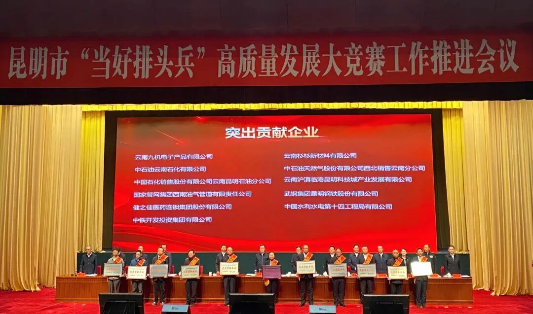 2月27日,昆明市委市政府在昆明会堂召开昆明市“当好排头兵”高质量发展大竞赛工作推进会议,对突出贡献企业和个人进行表彰。云南省连锁