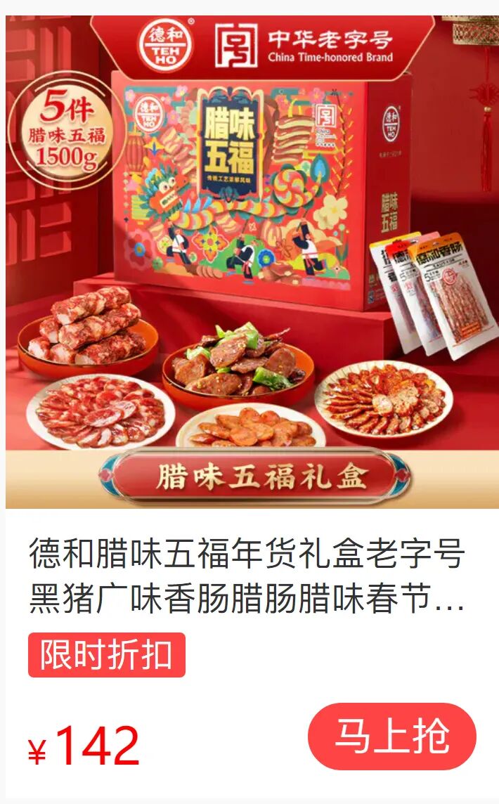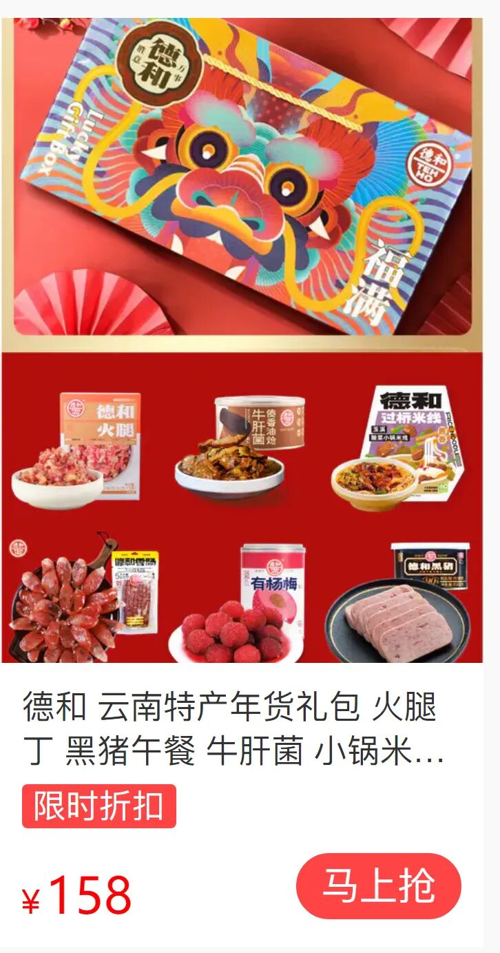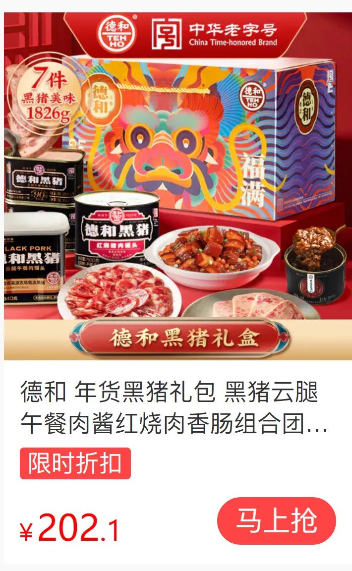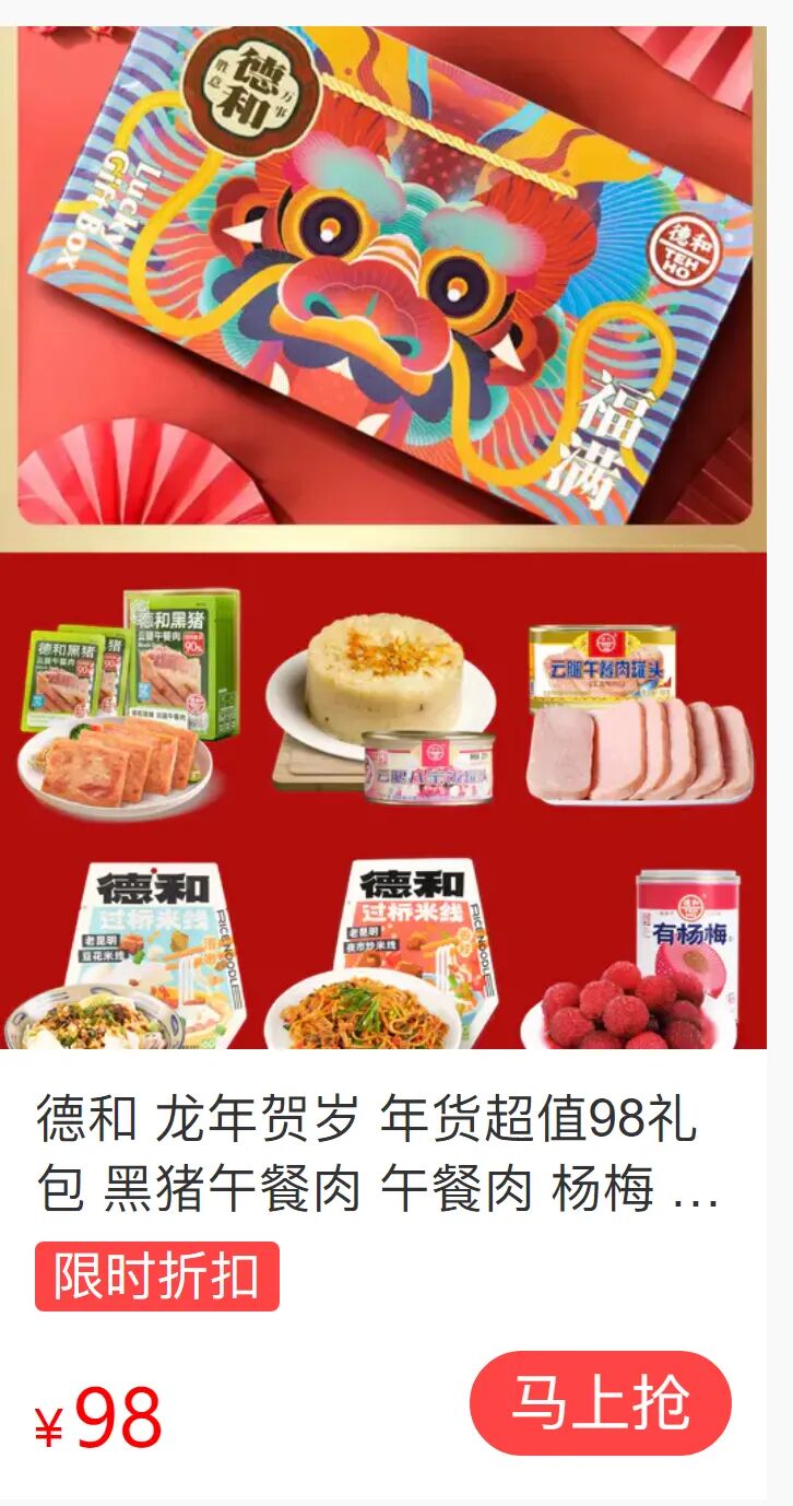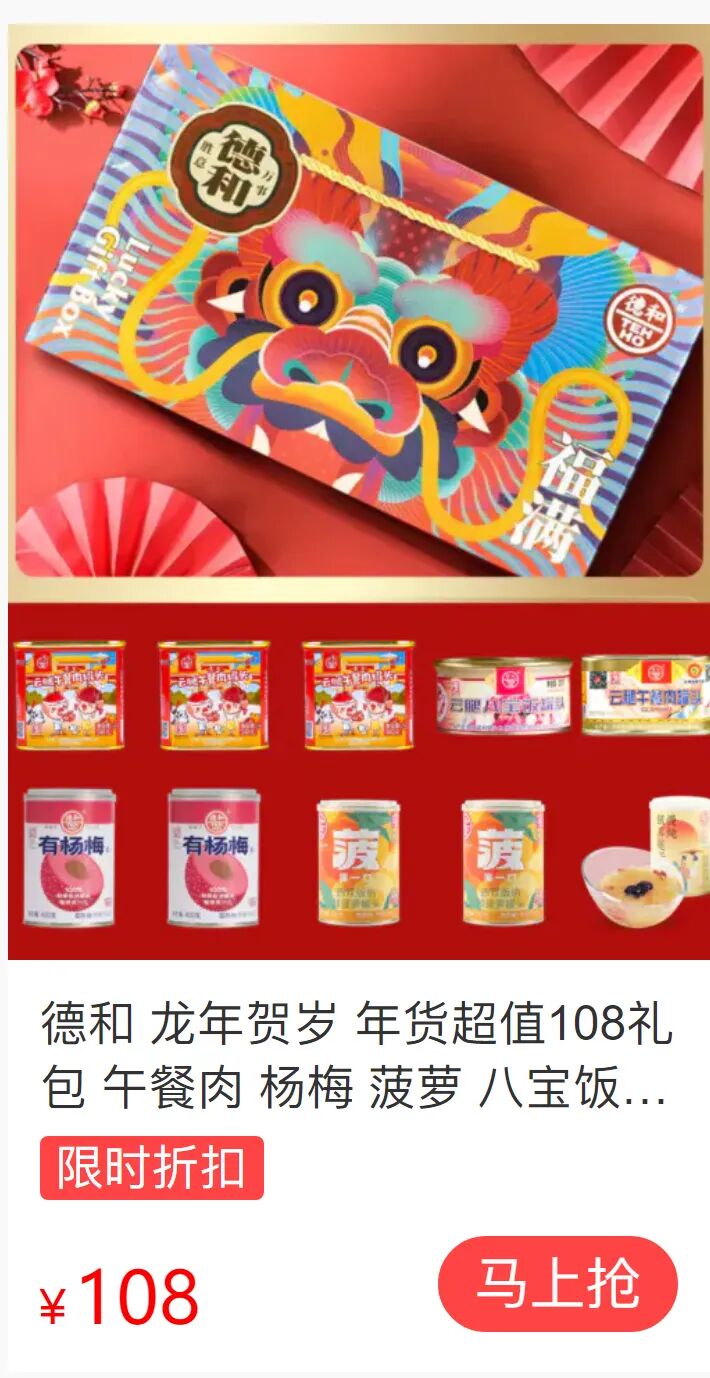 龙年贺岁 年货超值98礼包 ¥:132 限时特价98元点击购买龙年贺岁 年货超值108礼包 ¥:182 限时特价1