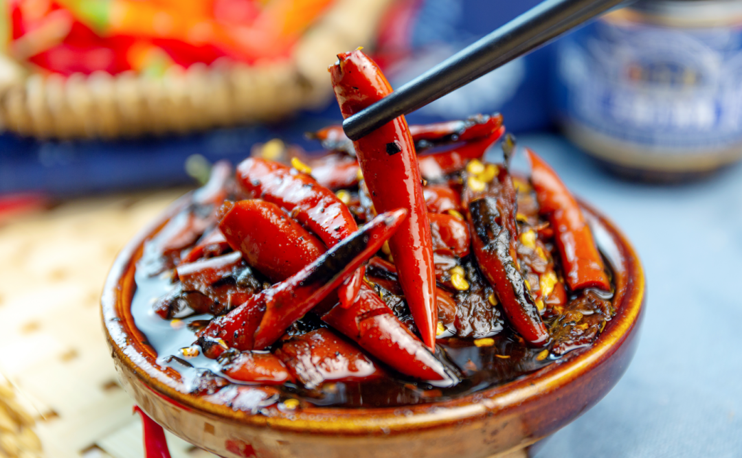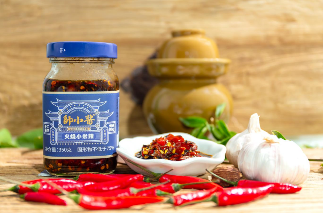 天然小米辣采摘后,集中架在炭火上烧烤至表皮微糊,然后揉碎,这里的做法和火烧辣椒一样。但在工艺上,帅小酱火烧小米辣却运用了白族传承了