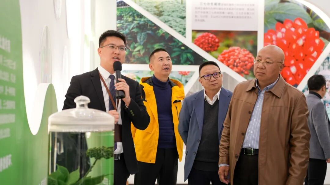 在七丹药业董事长杨朝文的带领下参观了七丹药业的基层党建示范长廊以及七丹三七文化展馆、七丹三七种植示范基地、冻干车间、提取车间、质检中心及三七产品展示中心,围绕三七历史文化、药用功效、连作技术障碍、种植技术创新以及产品创新研发等方面和与会代表一边参观一边交流。