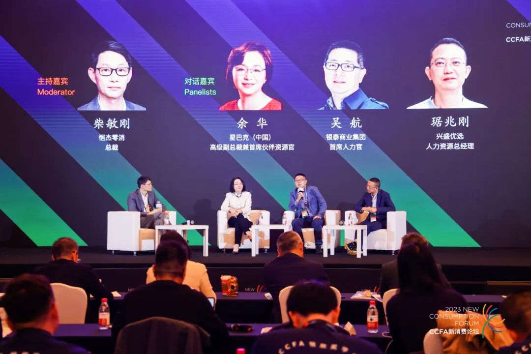 会上,恺杰零消总裁柴敏刚分享了2023年CCFA连锁经营企业组织能力调研报告数据。调研发现,当前企业的痛点主要表现在:跨部门协同不畅、人才梯队断档、创新力不足、激励机制难以激发员工积极性,数字化管理落后。公司治理方面,企业传承问题更加紧迫,近一半企业还没有明确的接班人计划。面对以上问题,柴敏刚作为主持人,与星巴克(中国)高级副总裁兼首席伙伴资源官余华,银泰商业集团首席人力官吴航,兴盛优选人人力资源总经理琚兆刚就不同视角看组织力再造话题展开了深度探讨。