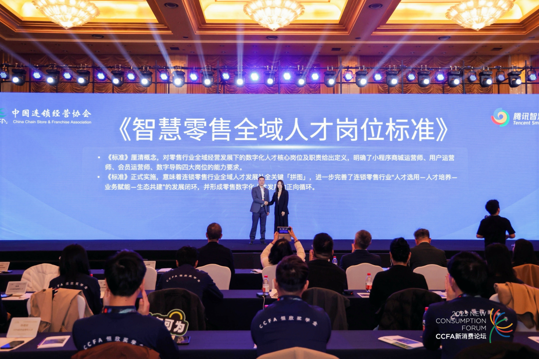 11月3日,中国连锁经营协会携手腾讯智慧零售,联合多家生态企业共同撰写的《智慧零售全域人才岗位标准》正式发布,并于今天正式实施。峰会上,中国连锁经营协会秘书长彭建真、腾讯智慧零售市场总经理梅婷女士,为《智慧零售全域人才岗位标准》的实施开启点亮仪式。