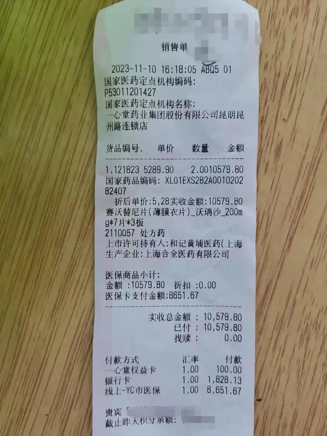10月31日,云南省肿瘤医院互联网医院医保“双通道”功能正式上线,成为全国首家实现互联网医院医保药品“双通道”处方流转的医院。标志着云南省肿瘤医院昆明医科大学第三附属医院迈入了互联网+医保“双通道”的新阶段。为解决国家医保谈判药品购药难问题,进一步加快国家医保“药品双通道”政策落实落地,切实满足广大人民群众的用药需求,医院高度重视此项工作,在云南省医疗保障局的指导和支持下,医院积极配合,稳步推进“双通道”药品电子处方流转建设工作,优先在医院HIS系统上完成了“线下双通道”的对接。一心堂(昆明昆州路店)于2023年11月10日成功实现首张电子处方在“双通道”药店医保结算。
