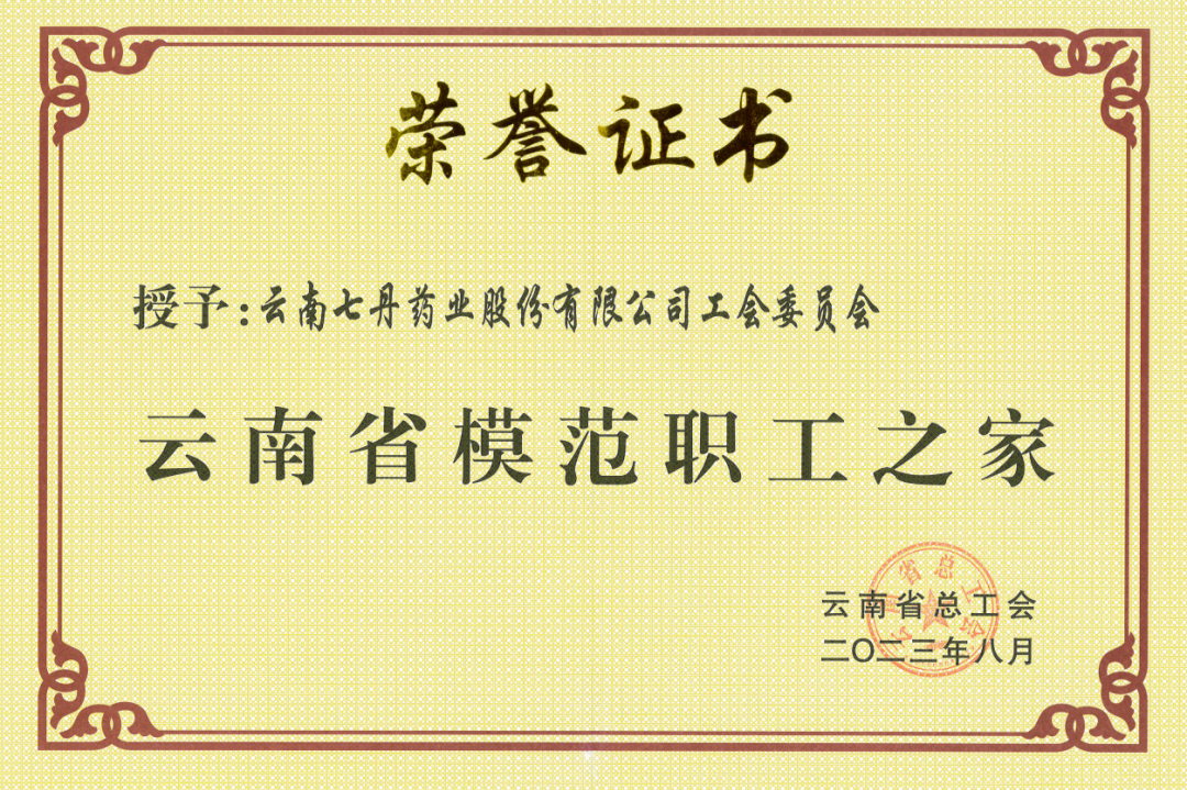 会员荣誉 | 七丹药业工会委员会被授予“云南省模范职工之家”荣誉称号