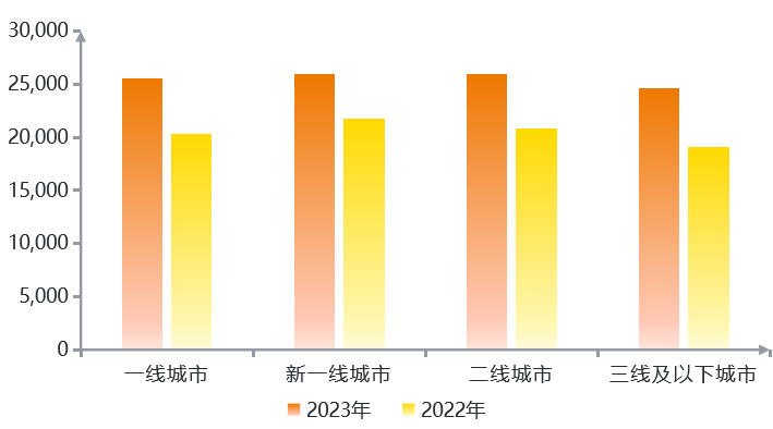 三线及以下城市:其他非一线、新一线和二线的城市。