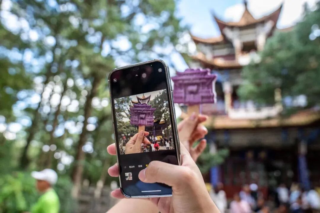 游客在昆明市金殿风景名胜区拍摄文创雪糕。图片源于昆报头条