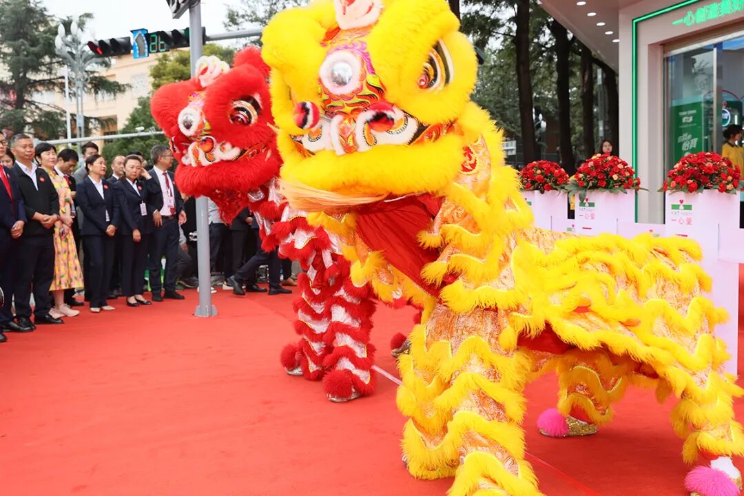 在接下来的醒狮纳福、舞狮表演环节中,两头舞狮为观众献上了精彩的表演。阮董事长为舞狮点睛,象征着祥瑞和好运的到来。随后进行的揭牌仪式上,阮董事长和店长蔡艳丽一同揭开了万店牌匾的红布,标志着第10000家直营药店的正式开业。万店员工宣誓环节将整个开业仪式推向了高潮,20名员工代表在一心堂云南公司总经理雷用成的带领下庄严宣誓,将不断提升专业能力和服务水平,一心守护民众健康!最后,所有领导共同为活动剪彩,开业典礼在庆典礼花中落下帷幕。