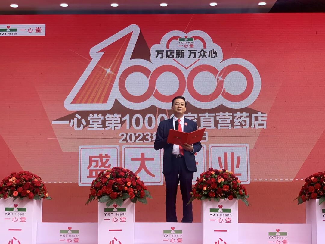 今天,一心堂第一万家直营药店开业,我谨代表一心堂全体同仁,感谢大家莅临现场,共同见证这美好的时光。从零到一万,我们迎来了新的起点!一心堂23年的发展,得益于这个伟大的时代;党和政府的好政策;顾客、合作伙伴、股东的信任和支持;以及全体员工的持续奋斗。在经营管理的过程中,我们积极创新,不断提升企业的竞争力、品牌力和市场影响力,实现稳定的发展和持续的价值创造。一心为大众提供全面的健康管理服务;为员工共同利益谋发展;为社会进步做贡献。顾客朋友们,感谢你们一直以来对一心堂的支持与厚爱,感谢你们给予一心堂的意见、建议,你们的信任给了我们前进的动力。我们将始终践行“一心为民,全心服务”的服务宗旨,全力以赴满足您的健康新需求,让药店成为您身边的健康服务站,为广大顾客朋友们提供更加专业、更加贴心的产品和服务。