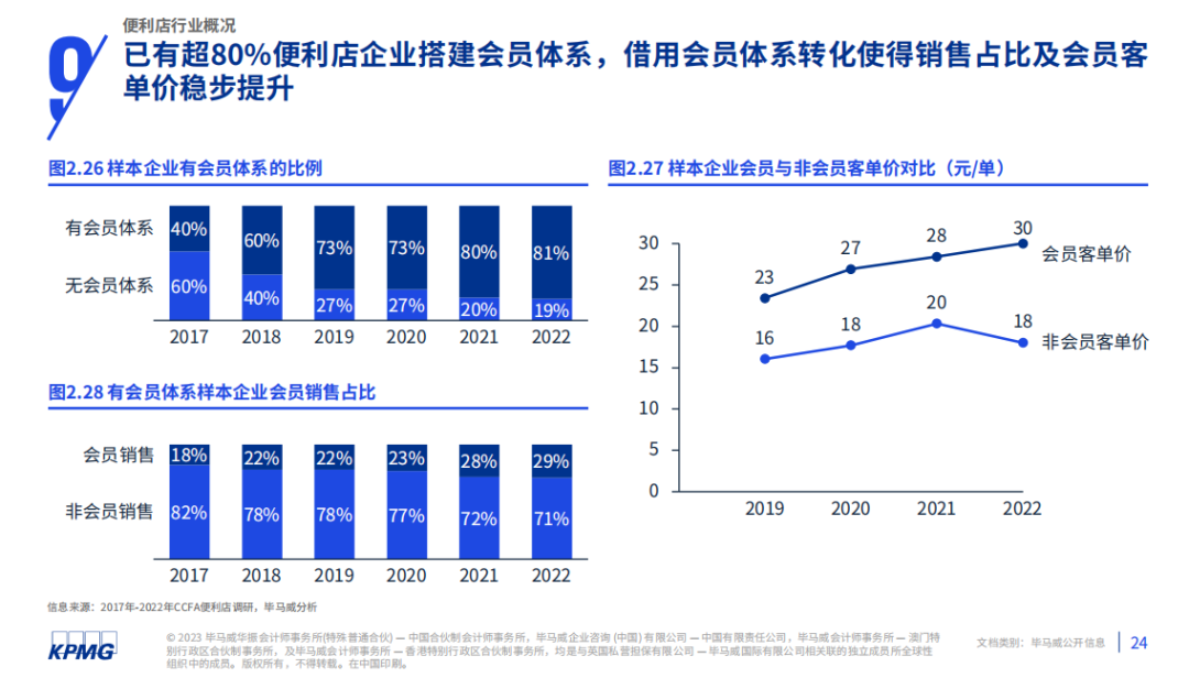 出品 | 零售商业财经 ID:Retail-Finance中国连锁经营协会联合毕马威发布的《2022年中国便利店发展报告》(以下简称《报告》)显示,超80%的便利店企业已经搭建了会员体系,从会员体系转化而来的销售额占比以及会员客单价正在稳步提升。随着外部环境转好,越来越多的便利店企业推出新举措、发展新技术、应用新模式来满足消费者所需,同时为打造“15分钟生活圈”提供新一轮增长动力。于便利店而言,消费者的“不便之处”就是其商机所在。然而,在便利店服务日益完善的当下,企业经营环境已是一片红海,搭建会员体系或许是通往蓝海市场的新航道。「零售商业财经」认为,作为个人刚需高频的零售业态,“便利店们”尤其应当高度注重会员运营,除提供便捷的商品与服务外,还应不断创新,以更多的情绪价值提升消费者“心占率”。“台湾经营之神”王永庆16岁时开了一家米店,在经营过程中,他会手动记录顾客家中人口数量,估算顾客吃完的时间,及时送米上门。此举可以视作是AI大数据预测服务与自动补货机制的“人工版”。除了送米上门,王永庆还主动帮顾客将旧米倒出,把米缸擦拭干净,以“新米在下、旧米在上”的形式整理好米缸,方便顾客取用。如此细致周到的服务收获了顾客的青睐,提升了米店的“心占率”,堪称是会员经济较早的成功典范之一。70年代末期,笔者最早接触的会员经济形式,是卖酱油的业务员带着酱油和瓷碗挨家挨户推销。这是早期“订阅式”会员制的雏形,“瓷碗”则是送给会员的附赠品。但当时这一形式只局限于个人业务,而非实体门店或连锁门店。此后,随着人均可支配收入与消费需求的逐步增加,小型连锁门店开始快速发展,相应地也出现了会员制。受限于当时的技术及观念,这一时期的会员制大多是手写登记后给消费者的实体会员卡,会员享有的优惠大多是会员折扣价以及生日礼。信息技术的发展及个人计算机普及,“会员管理系统”应运而生,可将会员资料建档,进行计算机化管理,企业也可以对会员数据进行分析,深入了解消费者行为模式以及市场变化趋势。进入数字互联网时代后,企业商家可以利用小程序、APP等载体建立会员体系,消费者消费更加便捷、商家也可以借此有效整理、分析会员信息,围绕会员消费轮廓、消费偏好等推出更具针对性的营销方案。巴克斯特(Robbie Kellman Baxter)在《引爆会员经济》一书中这样定义“会员经济”,所谓会员经济,等于把“一件”交易,转化成“延续性”交易,即在个人和企业之间建立一种可持续、可信任的正式关系,而这种关系是相互的,企业将为会员提供更好的福利,消费者则奉献自己的忠诚度,甚至能为企业经营提出好的建议,协助企业改善产品,进而形成一个正向循环。首先是遭遇了黑天鹅事件,导致线下实体门店营业受到影响。但紧接着,短视频与直播带货的崛起又为企业开辟了另一条道路——线上空间即是卖场。新渠道给予消费者更多选择,不用出门也可享受到购物的乐趣。其次是人口红利消失,获客成本提高。相较于维系已有用户,获取新用户的难度与成本都更高。此外,随着新型零售业态如集合店、折扣店、即时零售的出现,分走了原有的一部分客流,获客变得更加艰难。在此情形下,发展会员经济或将成为便利店发展的新增长曲线。在面临严峻挑战之际,不少零售业者纷纷开拓出异业结盟、开店中店、在线直播等新玩法,打破了以往单一的互动模式,从O2O(Online to Offline)到OMO(Online Merge Offline),以虚实融合为主流,在存量时代下创造新机会。浙江大学国际联合商学院数字经济与金融创新研究中心联席主任盘和林表示,数字技术已经渗入到人类生活的方方面面。当前,数字金融、数字农业、工业4.0、数字金融、消费互联网等数字应用已深入到人类社会的每个角落。随着数智化技术革新以及全渠道、多业态零售市场的发展,消费者的心智空间更加多维,对会员权益的诉求也日益多元。于是,营销手法与会员制的创新,成为企业提升消费者黏性和活跃度、挖掘用户长期价值、增强盈利能力的突破口。这对便利店经营来说,不再只有重折扣、烧钱这一条路,而是可以借助会员体系明晰用户画像,同时把陌生客变成新客、把新客变成熟客、把熟客变得忠诚。2016年向外资便利店学习,试水无人便利店等举措,均收获了资本的关注。2018年进入鲜食时代,除了已有的传统中式热食包点外,便利店也加大了引进低温短保的微波便当、饭团三明治的力度。2020年乘着瑞幸咖啡掀起的风潮,消费者能以更亲民的价格、更便捷的方式、更多样的渠道买到咖啡,便利店也嗅到了这一商机,引入咖啡业务。2022年“自有品牌”话题兴起,除鲜食之外,常规标品的自有品牌商品也逐渐在便利店里出现。2023年外部环境形势好转,消费市场重新分配、零售市场跨业态竞争愈发激烈。那么对于便利店来说,发展会员经济有哪些可参考的方向?第一,建立品牌APP(小程序):完善功能,让会员享有特权,区别于非会员。便利店的特性之一是门店密度高、个人每周消费频次相较于其他渠道来说更为高频,消费者甚至有可能一天到店两次,因此如果能将消费者的购买活动转移到会员平台中,对于获客、留客是有直接效果的。第二,灵活运用积分:扩展会员积分使用途径。例如除自用外,还可以转赠他人、转化为公益行动。目前会员积分