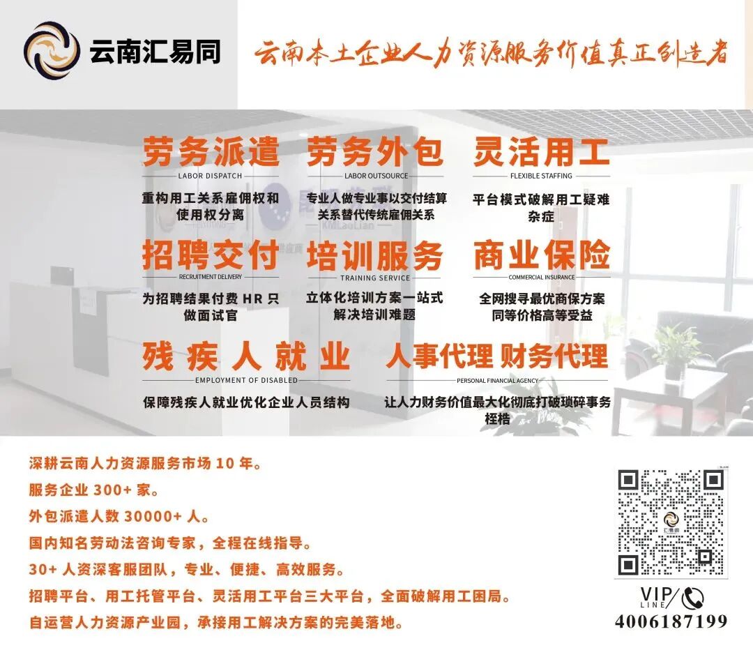 云南汇易同以着力提升人力资源管理服务质量与效力为目的,致力成为企业最值得信赖的人力资源战略合作伙伴,围绕着”强调专业、注重服务、勤于创新、精于价值”的发展理念,坚持以客户需求为导向,通过“线下服务+线上平台”的商业模式,实现从人力资源咨询,人才培训与发展,到招聘、雇佣、管理、留用的人力资源产业链服务全覆盖,在用工保障、用工风险、用工成本上为企业设计合规、灵活、精细、重构、转化、专业的一体化人力资本运营方案。