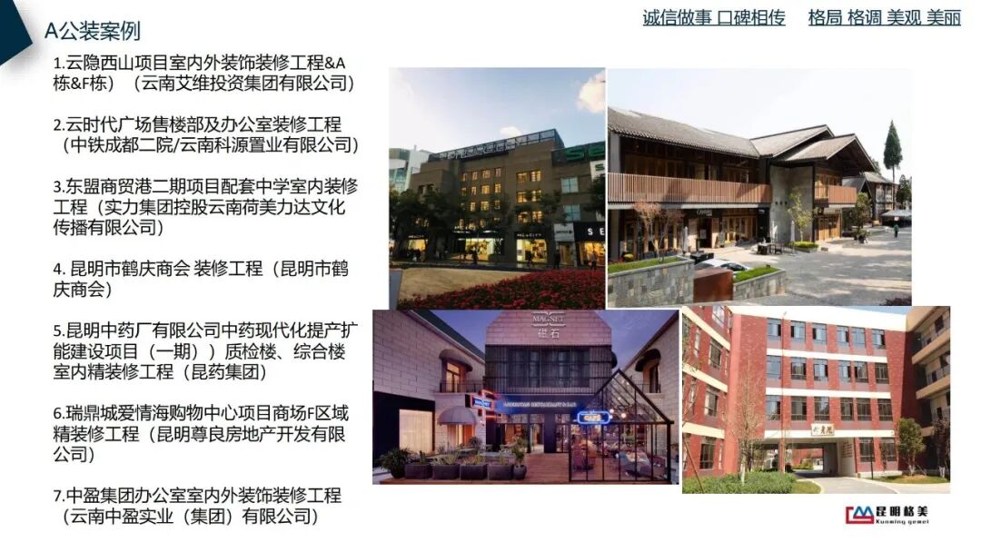 昆明格美装饰工程设计有限公司,2007年成立于云南省昆明市,公司资质为建筑装修装饰工程专业承包壹级、建筑工程施工总承包叁级、钢结构