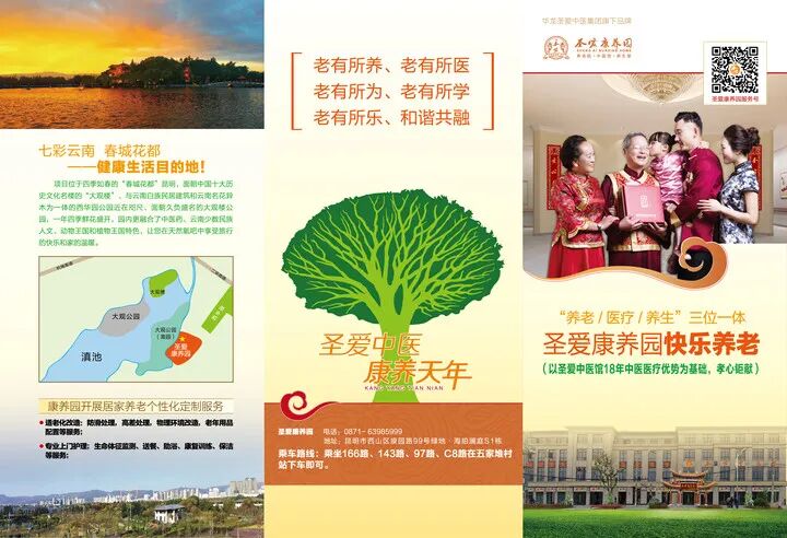 2016年2月,国务院印发《中医药发展战略规划纲要(2016—2030年)》,对新时期推进中医药事业发展作出系统部署。2018年1月25日,云南省十三届人大一次会议开幕式上,云南省省长阮成发在《政府工作报告》中提出了“打造绿色能源牌,做强绿色能源产业,把绿色能源产业打造成云南重要支柱产业;打造‘绿色食品牌’,把产业兴旺作为乡村振兴的重点方向,把高起点发展高原特色现代农业作为今后一个时期传统产业优化升级的战略重点;打造‘健康生活目的地牌’,大力发展从‘现代中药、疫苗、干细胞应用’到‘医学科研、诊疗’,再到‘康养、休闲’全产业链的‘大健康产业’,形成几个新的千亿元产业。”的发展战略。圣爱在国家顶层设计的指导下,结合在中医药产业中多年的探索与实践经验,制定了第二阶段的发展规划,即:在名老中医专家优势的基础上,开展“医疗+养生+养老”三合一模式的探索与实践。介绍如下: