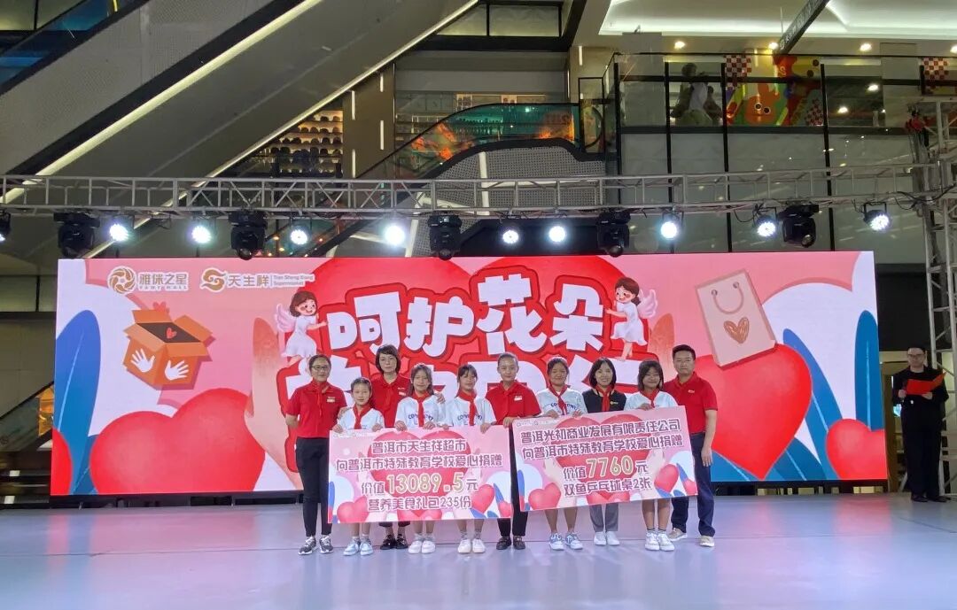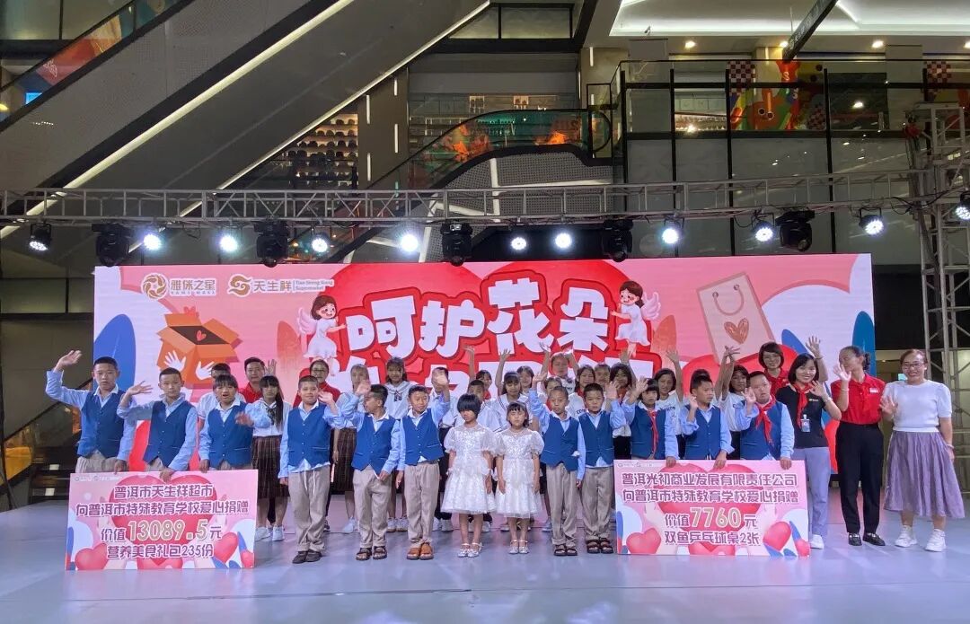 6月22日是中国儿童慈善活动日,践行企业的社会责任,呵护青少年茁壮成长,用行动关爱特殊儿童。6月21日晚,普洱市天生祥超市思茅四店X雅侎之星X雅侎滙,携手普洱市特殊教育学校举办“呵护花朵·益路同行”主题捐赠仪式。