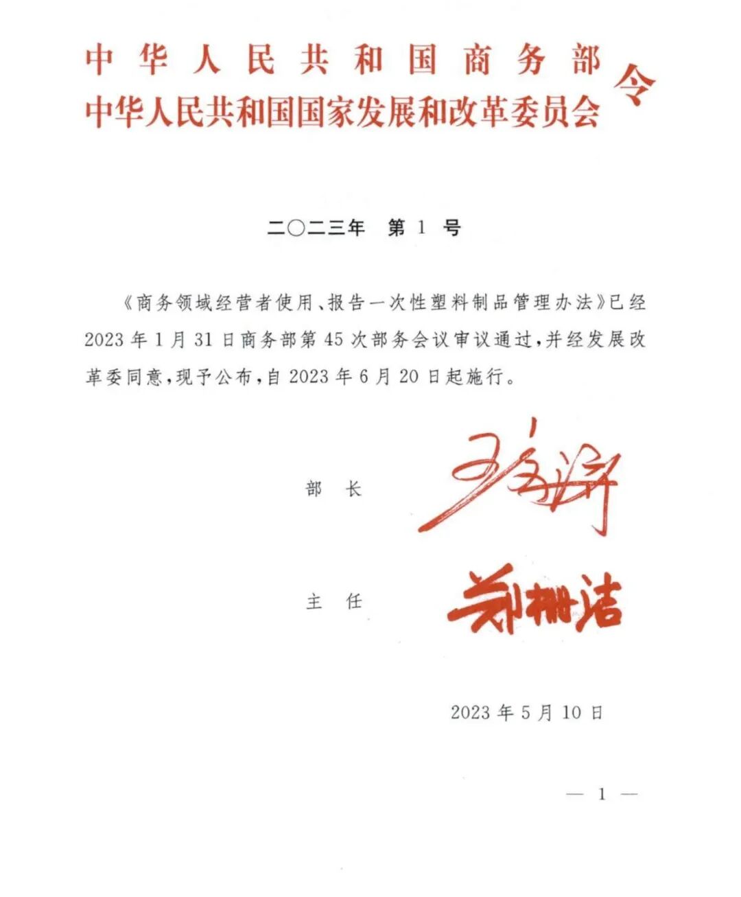 5月16日,商务部、发展改革委发布《商务领域经营者使用、报告一次性塑料制品管理办法》。《管理办法》重点对商务领域经营者使用、报告一次性塑料制品提出规范要求。