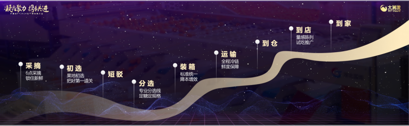 一个沃柑从枝头到餐桌的时间旅程 图源:品牌“生鲜就是和时间赛跑。”季景丹说,链路越短越好,中间环节越少越好,从农田到餐桌,从中央厨房到顾客手上的时间越短越好,而生鲜供应链效率就是决定能否跑得更快的关键。我们看到,提供“三全”养料的大润发生鲜供应链体系,正在与越来越多的品牌商产生化学反应。从顾客来大润发买菜,到顾客来买大润发的菜,大润发已然为“生鲜农产品难卖”这件事提供了一套科学可落地的解决方案。