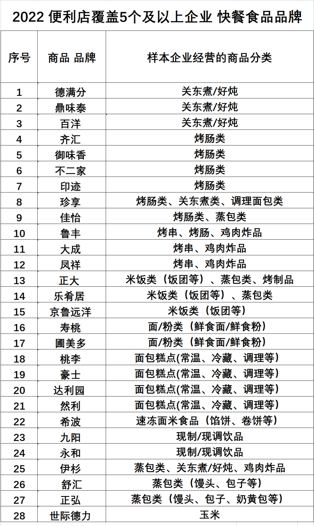 2022年 中国便利店畅销品解读系列4 | 快餐食品渗透统计