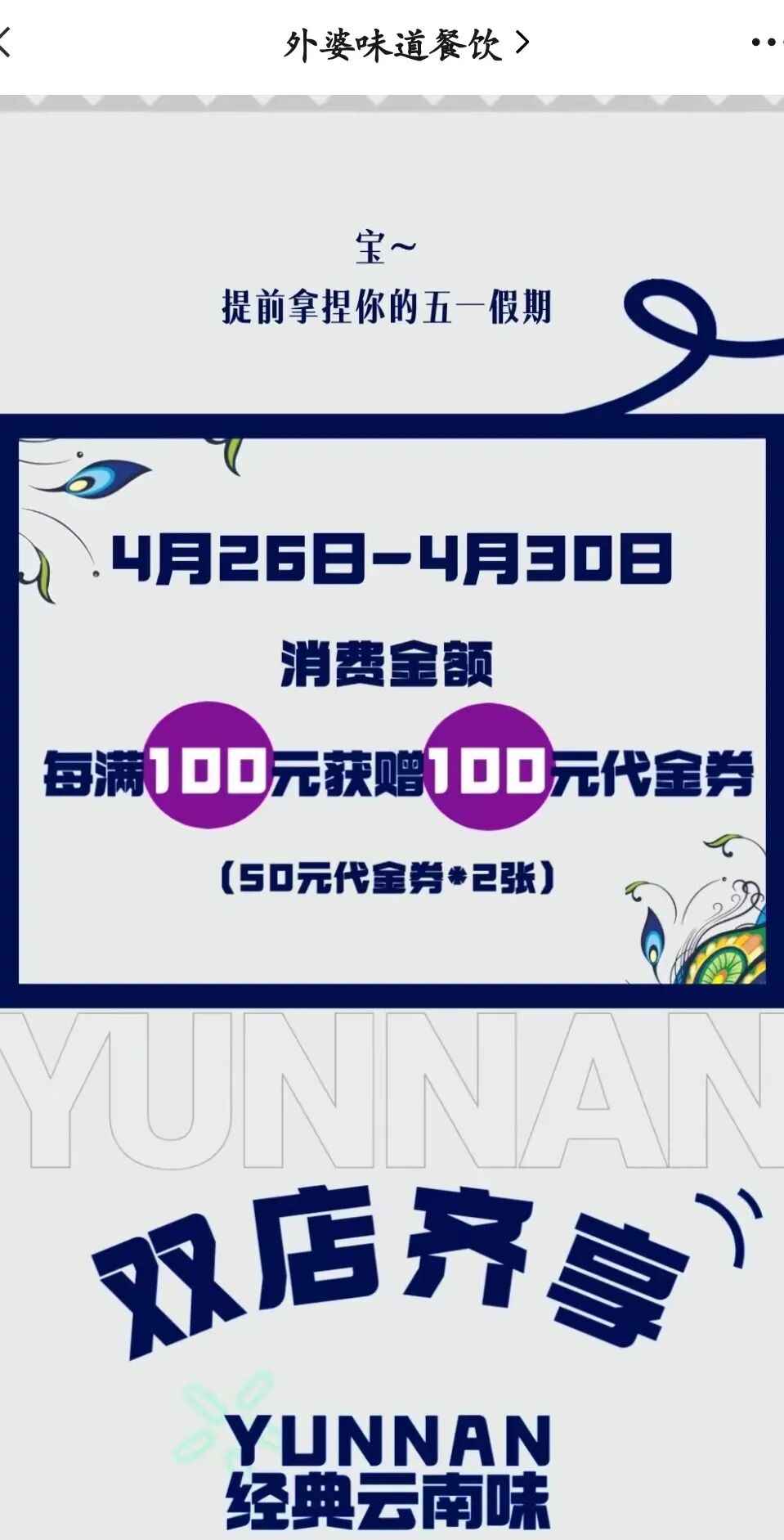 ▲外婆味道满百赠百活动仅限在:金马碧鸡店、五华吾悦店可享受