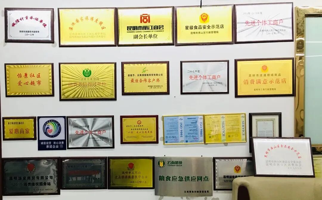 2013年至今,年年被授予“先进个体工商户”的荣誉称号;被西山区工商局选定为“西山区消费者联络站”;2013年9月,被滇池国家旅游度假区评为“食品安全示范店”;2014年3月,被滇池度假区怡景社区管委会评为“爱心超市”;2014年被市政府选定为首批生鲜超市;2015年被昆明市商务局评为“昆明市2015年度标准化菜市场(生鲜超市)建设先进企业”,2014年被度假区工商局评为“星级食品安全示范店”,2014年被赢商网评为“最具潜力企业”,2014年被评为消费者信得过单位,2015年被评为星级安全示范店,2016年被评为食品安全示范企业,2017年被评为12345消费者维权服务站,2018年被评为昆明市放心粮油示范销售企业,2020年被云南省粮食和物资储备局授予为“粮食应急供应网点”,2019-2020年,公司通过有关部门的现场审核和验收,获得了“ISO 9001质量管理体系认证证书”、“ ISO 14001环境管理体系认证证书”、“ ISO 22000食品安全管理体系认证证书”、“ISO 45001职业健康安全管理体系认证”、“售后服务认证证书(GB/T27922)”……