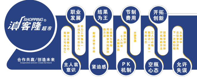 云南滇客隆商贸有限公司,是云南省经营连锁生鲜超市的一家本土企业,滇客隆生鲜超市隶属于云南滇客隆商贸有限公司,系公司辖下重心打造的品牌。云南滇客隆商贸有限公司秉承“商品质量是生存的根基,商品质量是发展的命脉”的经营理念和“身先自律、正向思维、成就别人、自动自发”的用人理念,筚路蓝缕、开拓奋进,充分发挥便利店提升群众生活品质,方便群众生活的优势。