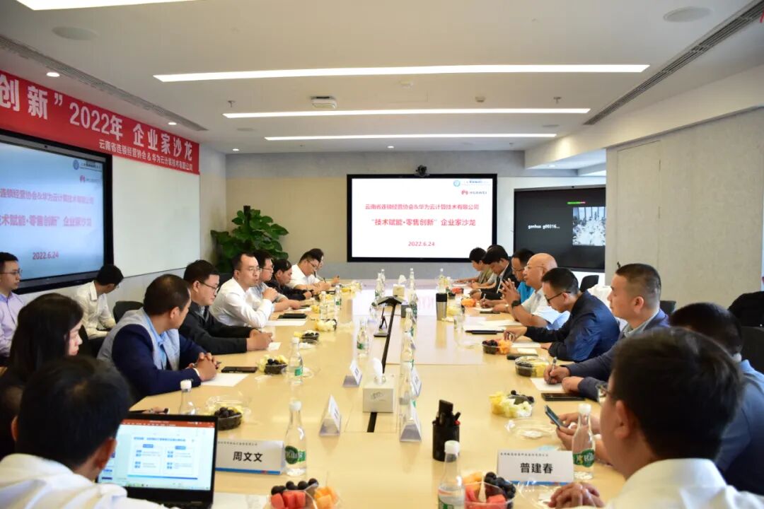 6月24日下午,由云南省连锁经营协会主办、华为云计算技术有限公司承办的“技术赋能·零售创新”企业家沙龙活动在华为技术有限公司云南代
