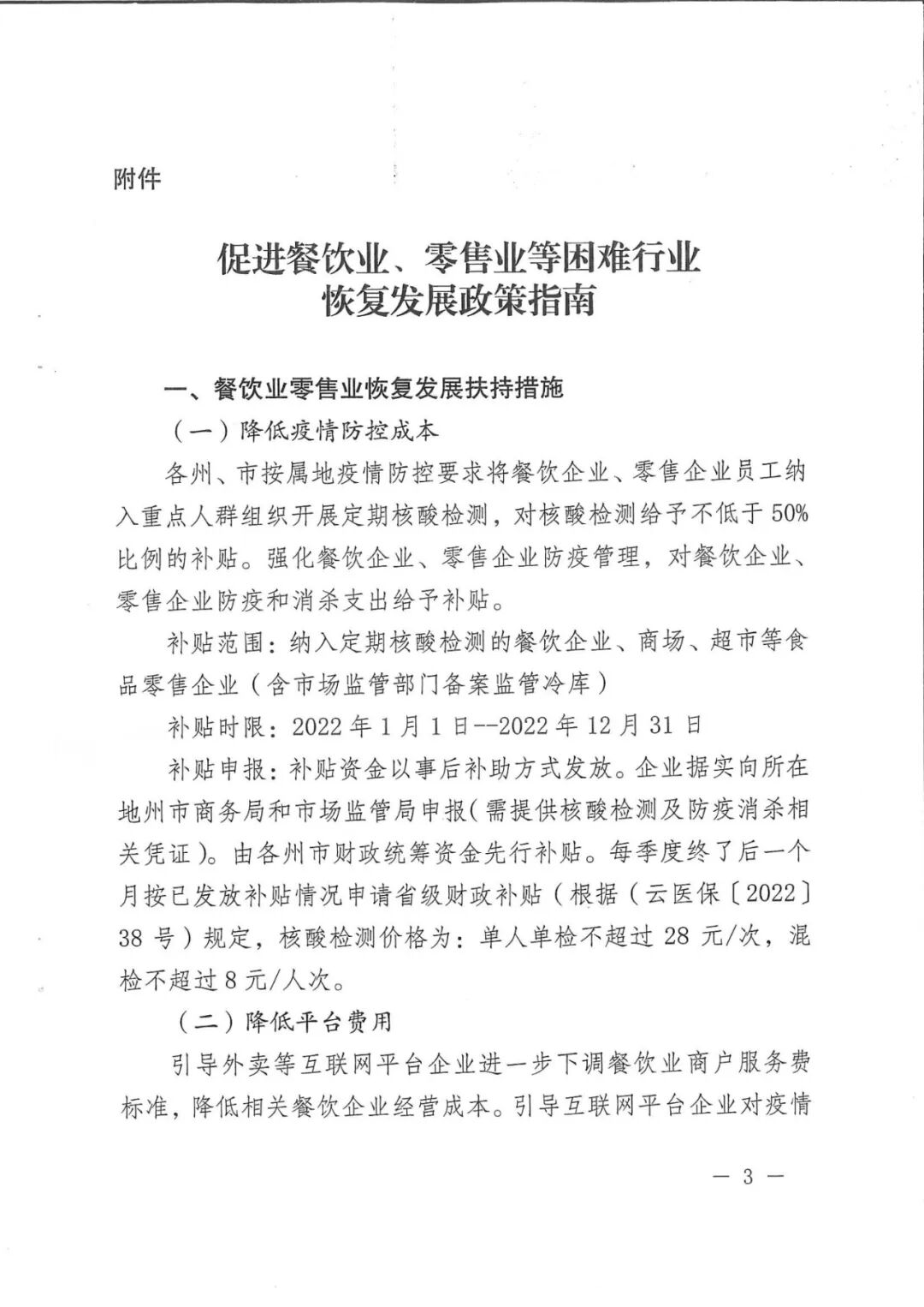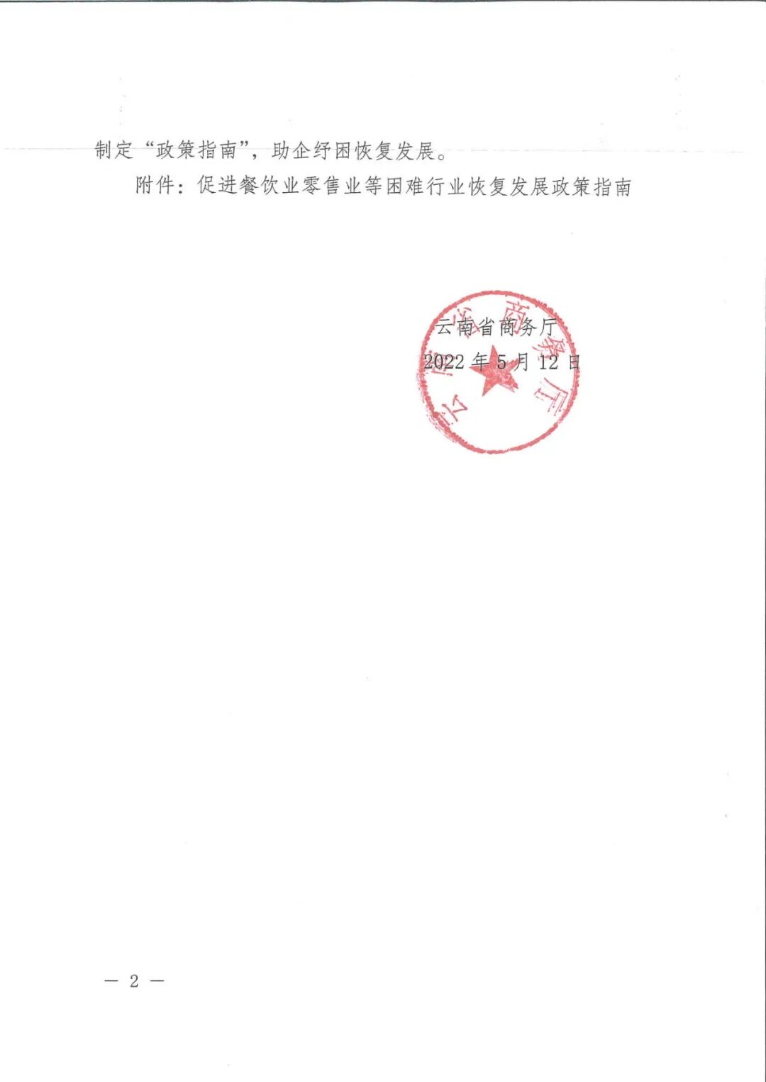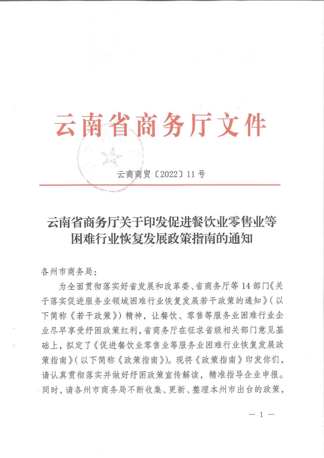云南省商务厅关于印发促进餐饮业零售业等困难行业恢复发展政策指南的通知