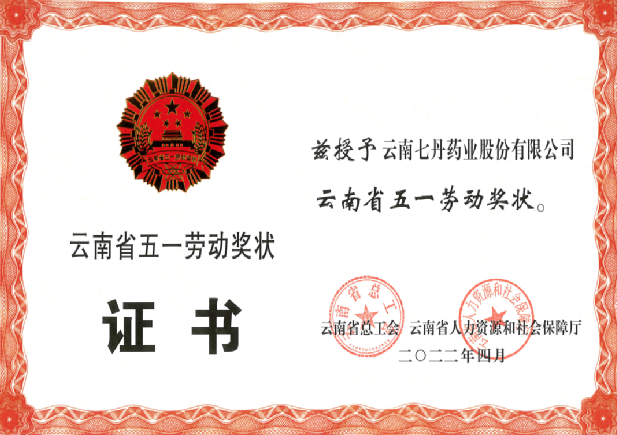 / 云南七丹药业股份有限公司荣获“云南省五一劳动奖状” | 会员风采