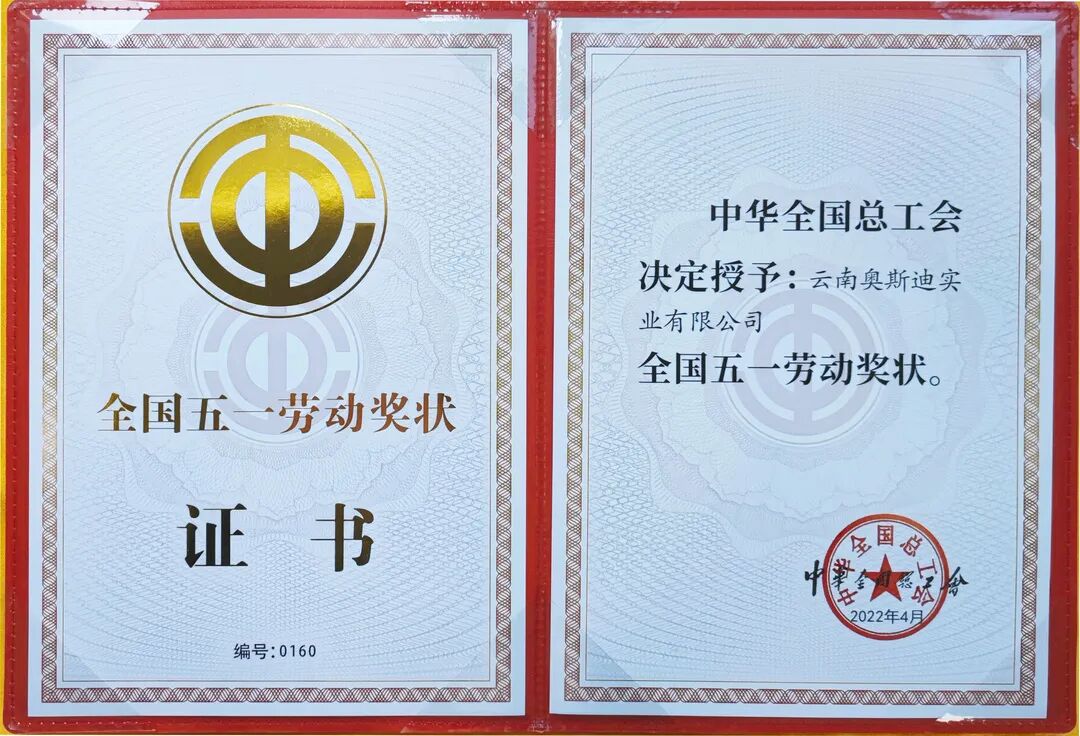 云南奥斯迪实业有限公司荣获“全国五一劳动奖状” | 会员风采