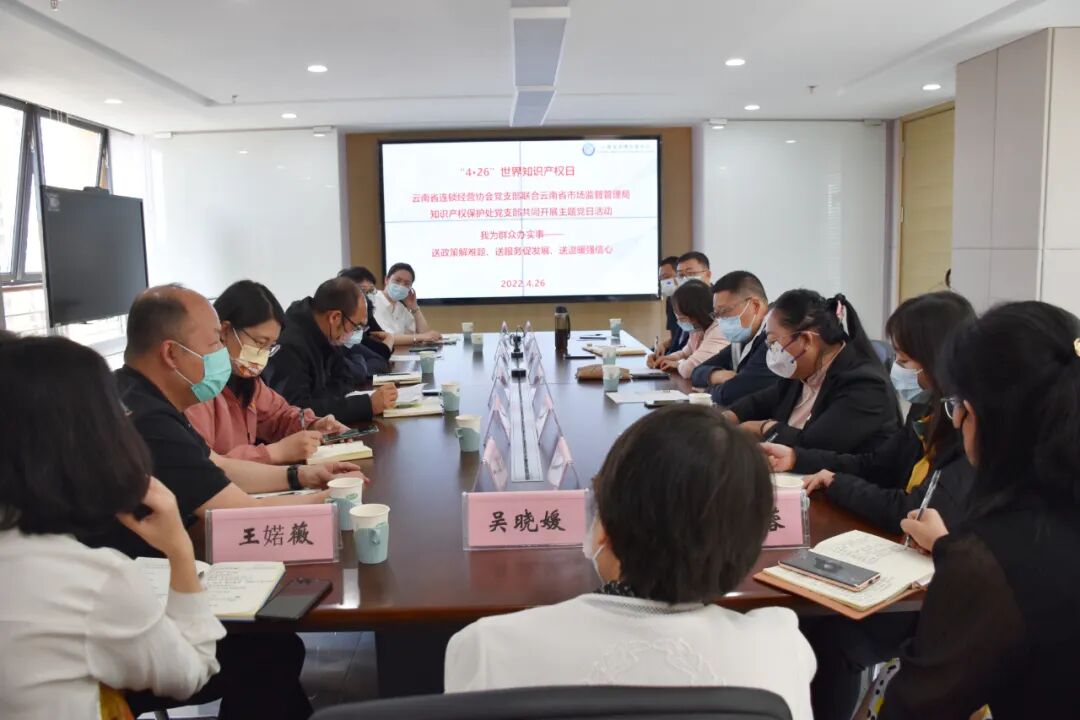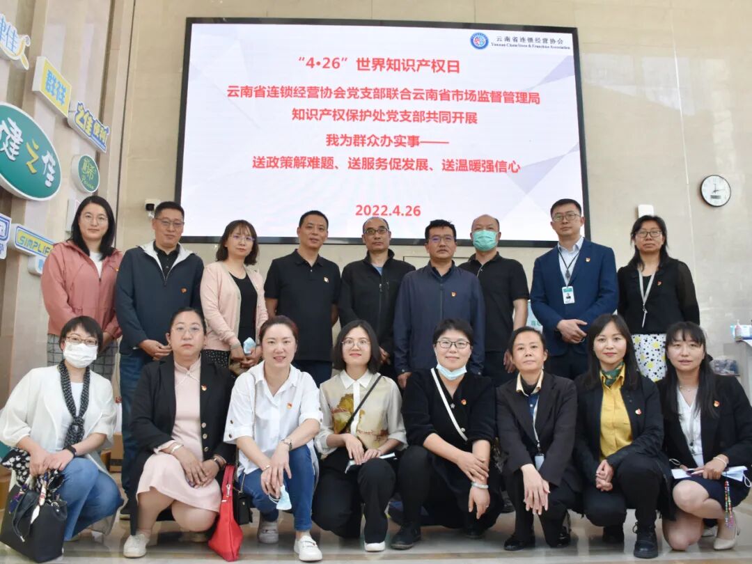 4月26日上午,云南省连锁经营协会党支部联合云南省市场监督管理局知识产权保护处党支部,共同开展了“4·26”世界知识产权日“我为群众办实事——送政策解难题、送服务促发展、送温暖强信心”主题党日活动。重温入党誓词之后,云南省市场监督管理局知识产权保护处党支部结合既往工作经验,就如何做好非公有制经济党建工作作了分享交流。特别强调,近年来,“两新”组织党建工作受到高度重视。从党中央到地方党委,都要求“两新”组织树牢“四个意识”,坚定“四个自信” ,拥护“两个确立”,做到“两个维护”。通过党建引领,不断提高政治站位,强化政治担当,确保正确发展方向。但在具体操作中,很多民营企业陷入困惑,不知道党建工作如何开展。事实上,对民营企业而言,最大的“讲政治”,就是做到遵纪守法、合法经营。而民营企业的政治担当,就是不断将企业做强做大,提供更多的就业岗位,带动更多的群众发家致富。与此同时,加强自主研发,提升创新能力,做好知识产权保护和运用,不断增强企业软实力与核心竞争力,推动高质量发展,共同撑起民族的脊梁。所以说,大家不要把民营企业的党建工作想得那么复杂,或者认为难以接地气。只要明白以上“原则”,将党建工作和业务工作有机结合,民营企业的党建工作便有了抓手和落脚点。云南省市场监督管理局知识产权保护处介绍了世界知识产权日的由来和意义,并就知识产权强国建设有关事项,作了解读和宣贯。明确指出,知识产权保护工作关系国家治理体系和治理能力现代化,关系高质量发展,关系人民生活幸福,关系国家对外开放大局,关系国家安全。党的十八大以来,以习近平同志为核心的党中央高度重视加强知识产权保护工作,部署实施一系列知识产权重大战略,健全完善知识产权相关法律法规和政策制度,深化知识产权体制机制改革,全方位加强知识产权保护工作,激发了各类创新主体的活力和潜能,有力推动了我国知识产权事业的快速发展。4月20日,2022年全国知识产权宣传周活动在全国各地同时启动,宣传周活动主题为“全面开启知识产权强国建设新征程”。全面开启知识产权强国建设新征程,标志着我国知识产权事业发展阶段、发展模式和治理方式的重大转变。特别强调,我国正在紧锣密鼓地开展知识产权强国建设。全国统一大市场的建设,也对企业加强知识产权保护的必要性和紧迫性,提出了新的更高的要求。具体到我省,将强化以企业为主体的创造机制,支持企业运用各类型知识产权的组合效用开展创新,培育一批知识产权竞争力强的企业……健全高效顺畅的运用机制,加快推进商标品牌建设,加强驰名商标保护,发展和传承好传统品牌和老字号,提升“云品”竞争力……实施地理标志运用促进工程和地理标志农产品保护工程,推动地理标志融入特色产业发展、生态文明建设、历史文化传承和乡村振兴。开展知识产权试点示范工作,推动各类创新主体贯彻知识产权管理规范国家标准……希望各企业立足新发展阶段,完整、准确、全面贯彻新发展理念,服务和融入新发展格局,以推动高质量发展为主题,以深化供给侧结构性改革为主线,以改革创新为根本动力,切实加强知识产权保护,以此提升企业竞争力,有力推动我省经济高质量跨越式发展。来自云南省市场监督管理局知识产权保护处、昆明市盘龙区市场监督管理局、云南省连锁经营协会、云南健之佳连锁健康药房有限公司、一心堂药业集团股份有限公司、昆明精益眼镜有限公司、云南境界广告传媒有限公司、国药控股云南有限公司等党支部(单位)的党员、有关负责人参加了活动。活动期间,云南省市场监督管理局知识产权保护处、昆明市盘龙区市场监督管理局,还结合法律法规和经典案例,对参会代表提出的问题给予现场答疑和专业指导,对于企业提高知识产权保护认识、增强知识产权保护和运用能力,起到积极的作用,受到参会人员的热烈欢迎和一致好评。云南省连锁经营协会知识产权维权服务工作站对近期工作情况作了汇报,同时表示,工作站将在省、市、区市场监督管理局及知识产权保护部门的指导和支持下,充分发挥桥梁纽带作用,积极引导企业切实把加强知识产权保护作为完善产权保护制度的重要内容,从而有效提高企业竞争力,全面提升知识产权创造、运用、保护和管理赋能。