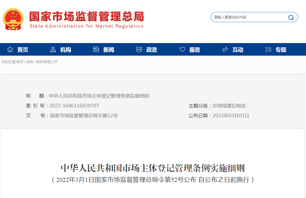 3月1日公布的《中华人民共和国市场主体登记管理条例实施细则》