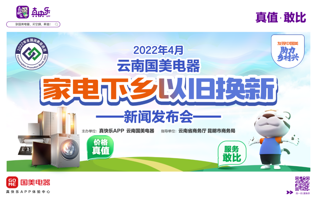 据介绍,4月1日至4月30日,国美电器将携手真快乐APP开启放价促销活动。依托线上线下双平台,着力打通“人货场”,以低价为核心利益点,邀请海尔、海信、美的、方太、老板、松下、西门子、博世等核心品牌参与活动,在确保资源货源的前提下,提高产品和服务质量,提升消费者的生活品质,引导广大市民焕新生活,促进消费市场全面复兴回暖。同时,配合换新补贴、节能补贴、家电下乡等活动,充分满足“家生活”的消费需求。为促进云南消费复苏、经济增长,云南国美也不断探索新的营销方式,寻求新的引流改变,力求在危机中找到希望。一方面,云南国美积极与厂商签约、共享流量,升级供应链体系、增强议价能力,以此保障消费者的权益。另一方面,云南国美将提供低价的商品、优质的服务,让消费者买得放心、用得舒心。此次家电下乡、以旧换新活动,云南国美将发放大量补贴券,以旧换新至高补贴400元,购买节能家电至高补贴800元。相关活动信息,广大消费者可上真快乐APP和云南区域各国美门店了解详情。昆明国美电器有限公司中高管团队、合作厂商及新闻媒体代表参加了本次“家电下乡 以旧换新”活动新闻发布会。
