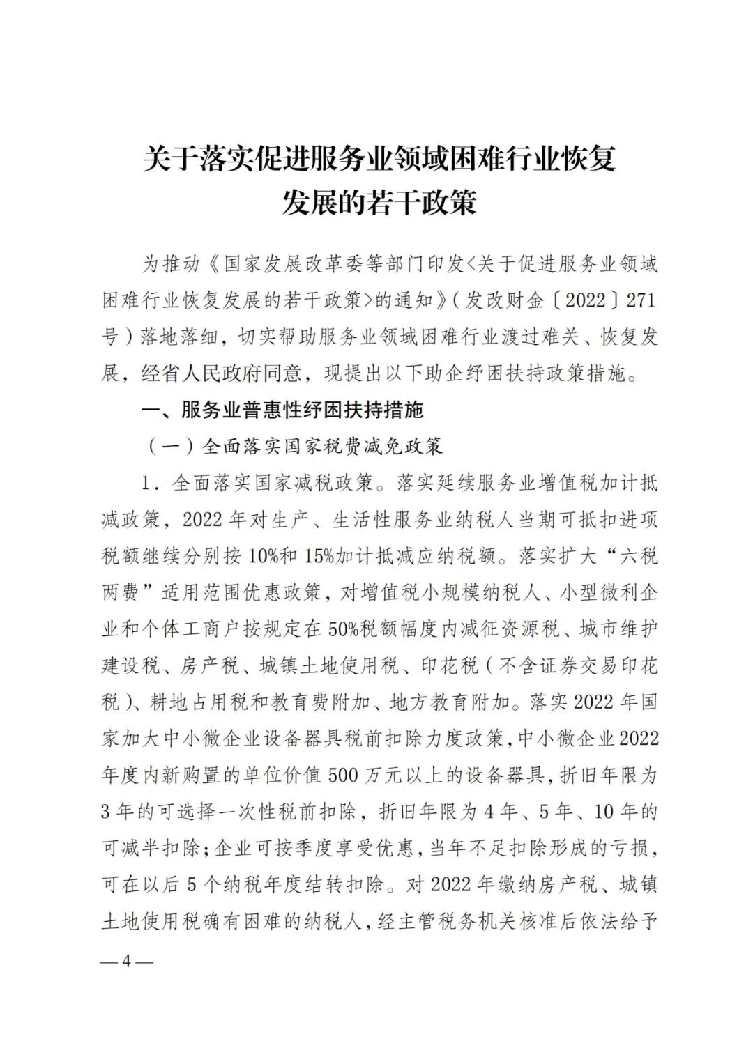 近日,经云南省人民政府同意,云南省发展和改革委员会、云南省商务厅等14部门联合印发了《关于落实促进服务业领域困难行业恢复发展的若干政策》(云发改财金〔2022〕226 号),以推动《国家发展改革委等部门印发<关于促进服务业领域困难行业恢复发展的若干政策>的通知》(发改财金〔2022〕271 号)落地落细,切实帮助云南零售业等服务业领域困难行业渡过难关、恢复发展。一是全面落实国家税费减免政策。包括:全面落实国家减税政策。落实延续服务业增值税加计抵减政策,2022年对生产、生活性服务业纳税人当期可抵扣进项税额继续分别按10%和15%加计抵减应纳税额。落实扩大“六税两费”适用范围优惠政策,对增值税小规模纳税人、小型微利企业和个体工商户按规定在50%税额幅度内减征资源税、城市维护建设税、房产税、城镇土地使用税、印花税(不含证券交易印花税)、耕地占用税和教育费附加、地方教育附加。落实2022年国家加大中小微企业设备器具税前扣除力度政策,中小微企业2022年度内新购置的单位价值500万元以上的设备器具,折旧年限为3年的可选择一次性税前扣除,折旧年限为4年、5年、10年的可减半扣除;企业可按季度享受优惠,当年不足扣除形成的亏损,可在以后5个纳税年度结转扣除。对2022年缴纳房产税、城镇土地使用税确有困难的纳税人,经主管税务机关核准后依法给予减免。建立财政、税收等部门联动机制,加强税收优惠政策宣传辅导,优化办税服务。延续实施社保费减免。2022年延续实施阶段性降低失业保险费率政策,对不裁员、少裁员的企业继续实施普惠性失业保险稳岗返还政策,在2022年度将中小微企业返还比例从60%最高提至90%,继续推行“免申即享”。符合条件的服务业市场主体直接向参加失业保险的经办机构申请办理稳岗返还补贴。二是分类实施房租减免政策。2022 年对省内承租国有企业、机关事业单位国有房屋的服务业小微企业和个体工商户减免3个月租金,其中,对2022年被列为疫情中高风险区所在的县级行政区域内的服务业小微企业和个体工商户,在减免3个月的基础上增加至减免6个月租金。鼓励各州、市统筹各类资金,对承租非国有房屋的服务业小微企业和个体工商户给予适当帮扶。鼓励非国有房屋租赁主体在平等协商的基础上合理分担疫情带来的损失。对减免租金的房屋业主,2022年缴纳房产税、城镇土地使用税确有困难的,经主管税务机关核准后依法给予减免。因减免租金影响国有企事业单位业绩的,在考核中根据实际情况予以认可。三是扩大有效金融供给。包括:加大普惠金融支持力度。2022年引导银行用好2021年两次降低存款准备金率释放资金,加大再贴现使用力度,优化再贷款限额管理,发挥好货币政策工具的总量和结构双重功能,优先支持困难行业特别是服务业小微企业和民营企业。落实好支持普惠小微的市场化工具引导作用,按季度开展利率互换,对地方法人银行普惠小微贷款余额增量的1%提供激励资金,持续增加普惠小微贷款投放。督促金融机构做好延期还本付息政策接续,按照市场化法制化原则,对正常经营的服务业市场主体自主协商续贷业务办理,不得盲目惜贷、抽贷、断贷、压贷,保持合理流动性。引导金融机构加强与行业主管部门信息共享,商务部门将重点商贸流通企业名录与金融机构实现共享,运用中小微企业和个体工商户的交易流水、经营用房租赁以及有关部门掌握的信用信息等数据,提升金融机构风险定价能力,创新推广随借随贷、随借随还等信贷产品。鼓励符合条件的餐饮企业、零售企业、旅游企业、交通运输企业、航空公司等发行公司信用类债券。继续推动金融系统减费让利。落实好贷款市场报价利率(LPR)下行、支农支小再贷款利率下调政策,引导企业综合融资成本稳中有降。督促指导金融机构按规定降低银行账户服务收费、人民币转账汇款手续费、银行卡刷卡手续费,减轻服务业小微企业和个体工商户经营成本压力。四是积极开展“三乱”治理。采取切实有效措施制止乱收费、乱摊派、乱罚款行为,研究实施专项整治行动方案,开展涉企违规收费治理,完善整治涉企乱收费协同治理和联合惩戒机制,防止对服务业的各项助企纾困政策效果被“三乱”抵消。联动线上线下,开展形式多样的促消费活动。一是各州、市按属地疫情防控要求将零售企业员工纳入重点人群组织开展定期核酸检测,对核酸检测给予不低于 50%比例的补贴支持,由商务和市场监管部门共同制定具体实施方案,并确定企业名单。强化零售企业防疫管理,对零售企业防疫、消杀支出给予补贴支持。省级统筹相关资金对各州、市予以一定补助。二是积极争取中央财政服务业发展资金,统筹现有中央和省级财政资金,加大县域商业体系、城市商业体系建设支持力度,加强政策支持,发挥市场机制作用,推动“一个上行(农产品上行)”和“三个下沉(供应链下沉、物流配送下沉、商品和服务下沉)”、城市商业体系建设提升行动。三是在确保失业保险待遇发放,基金备付能力达24个月以上的失业保险统筹地区,可对当地零售企业阶段性实施缓缴失业保险政策,符合条件的零售企业提出申请,经参保地人民政批准后予以缓缴,期限不超过一年,缓缴期间免收滞纳金。四是加强零售企业金融支持力度。实行零售企业名单制管理,对于