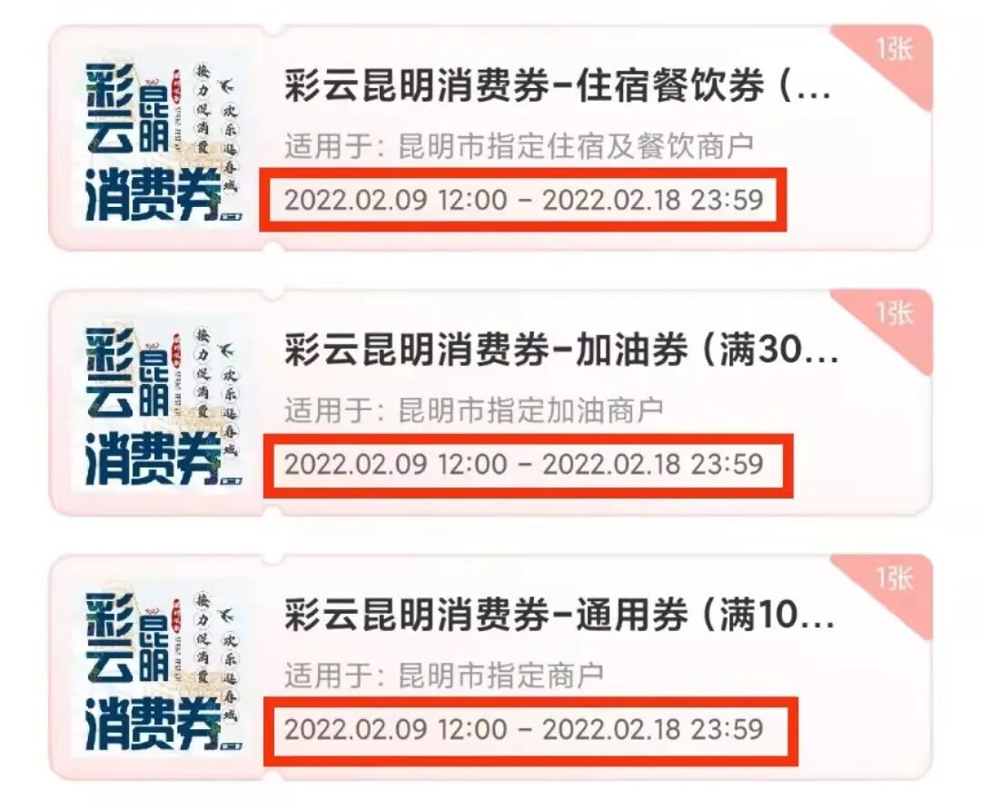 各位小伙伴第二期“彩云昆明消费券”即将到期!今晚23:59使用时间就截止了重要提醒住宿餐饮券(1)50元券,消费满100元可用一张