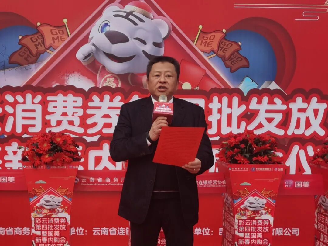 年终聚惠”系列促消费活动,其中于年内面向全省发放“彩云消费券”三期。参加活动企业为省内主要商贸流通企业,覆盖电商、商超百货、餐饮、中西药、家电家居、通讯器材、成品油、家政等行业。活动期间,广大企业结合司庆、店庆、会员日、双12、年终大促等消费特点,创造性地开展“折上折”系列促消费活动,最大程度地惠及消费者,让消费者享受到更多的优惠福利,也最大程度地拉动消费增长,激发云南整个消费市场的潜力。作为云南省连锁经营协会的重要成员单位,昆明国美电器有限公司在“彩云消费券”发放活动期间,也积极投入资金和资源,配套开展满千返百、满万返千、以旧换新享百元优惠等补贴活动。部分主流家电品牌,最高可享近30%的优惠。活动期间,曾引起云南日报、云南网、都市条形码等省内多家主流媒体的追踪采访报道。据统计,昆明国美电器有限公司2021年四季度较三季度营业收入提升近137%,为“彩云消费券”落地执行作出了重要贡献。张云鸿表示,针对“彩云消费券”发放活动,云南省连锁经营协会在云南省商务厅的统筹指导下,积极动员会员企业及全省相关企业报名参加消费券发放活动,确保参与企业门店覆盖全省129个县(市、区)。发挥桥梁纽带作用,组织重点企业与消费券发放平台进行技术对接和测试,及时跟进解决“彩云消费券”报名、领取、核销等过程中存在的问题。发动会员企业及全省相关企业在“彩云消费券”基础上,结合消费特点和顾客需求,创造性地开展“折上折”系列促消费活动,以此打造活动亮点,吸引消费者到店消费。协调省内主流媒体,对成效显著企业进行跟踪采访,并通过云南省连锁经营协会官方微信公众号持续宣传报道。组织工作人员面向全省16个州市,对活动落地执行情况进行抽查检核。引导参与企业切实做好顾客答疑,形成投诉汇总机制,对存在的问题及时妥善处理……以此助推“彩云消费券”发放活动组织有序、顺利开展、取得成效。张云鸿倡议,希望全省相关企业在第四期“彩云消费券”发放活动期间,坚持规范促销、诚信宣传,倡导品质、绿色、健康消费新理念,营造良好社会舆论氛围。坚持做到严守防疫安全红线,统筹疫情防控和活动安排,加强活动安全管理,担起安全主体责任,有效防范活动场所发生安全事故。妥善处理活动中的投诉问题,坚决维护消费者合法权益和活动秩序,坚决抵制假冒伪劣行为。与此同时,希望昆明国美电器有限公司始终坚持诚信经营,不断创新发展,为促进云南市场繁荣、消费升级、满足消费者的品质生活需求,作出应有的贡献。启动仪式上,应邀参加活动的TCL昆明商务中心、海尔智家云南分公司、海信集团昆明营销中心、方太集团云桂大区KA部、索尼(中国)有限公司昆明联络处、昆明老板电器销售有限公司等厂商领导也先后上台发言,对云南省商务厅、云南省连锁经营协会对企业的关心与帮助表示感谢,并就如何拿出最大的让利惠及消费者,助推第四期“彩云消费券”发放活动及昆明国美电器有限公司2022年新春内购会取得成效,表明了自身的态度。
