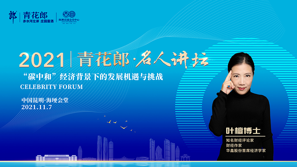 11月7日,由郎酒股份主办、云南省连锁经营协会协办的“青花郎· 名人讲坛”在昆明海埂会堂举办,知名财经评论家叶檀受邀作了《“碳中和