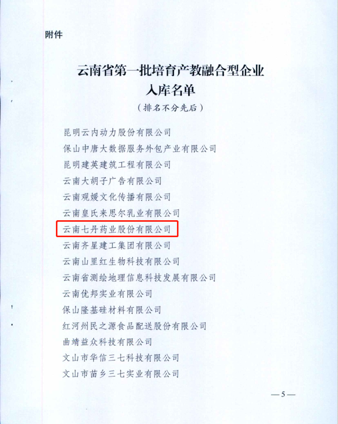 云南省连锁经营协会副会长单位七丹药业入选云南省第一批培育产教融合型企业库