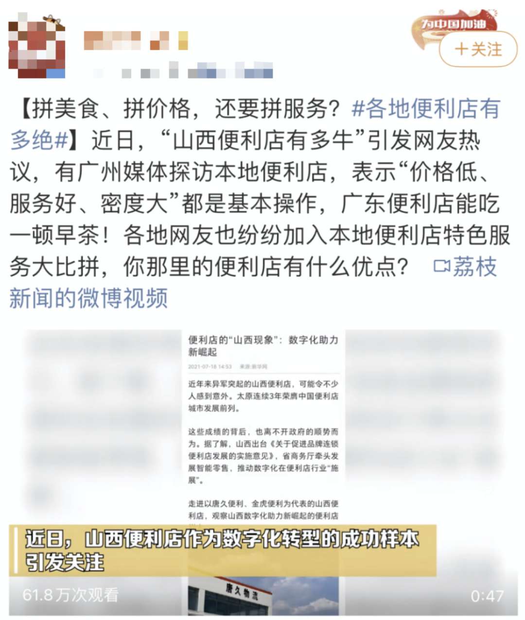 近日,#山西便利店有多牛# 登上热搜,让全国网友为便利店“吵起来”了。各地网友吹响“彩虹屁”为本地便利店代言,直接打响了便利店“荣