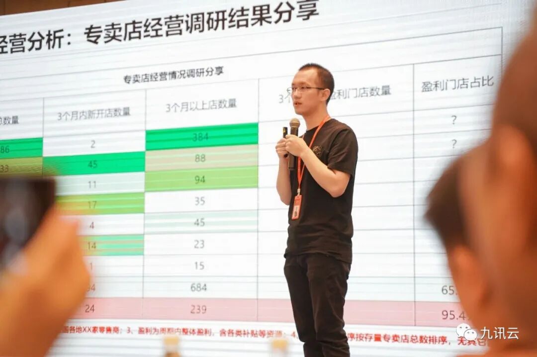 “老板的决心再加上九机的支撑,数字化转型不会有太大的问题,”我们会是笑着去干这个事情的。“在谈到老板的决心时,陈鸿睿分享了自己过去2年的心路历程。“我们的目的就只有一个,就是为了让大家在这个行业活得更好。”九机COO陈鸿杰、营销中心总监郭秋岑、九讯云事业部总监王魁等九机各业务板块负责人也做了主题分享。|九机COO陈鸿杰:做好门店经营和优化中台架构,才能逆势而上。根据九机数据显示,2021年上半年全国手机市场大盘销售环比整体呈现下滑趋势,而九机在2月和5月两个关键营销节点销量不降反增,且九机盈利门店数量占比远高行业平均水平。陈鸿杰介绍,取得这个成绩离不开正确的门店经营逻辑和中台组织对前端业务的支持与保障。