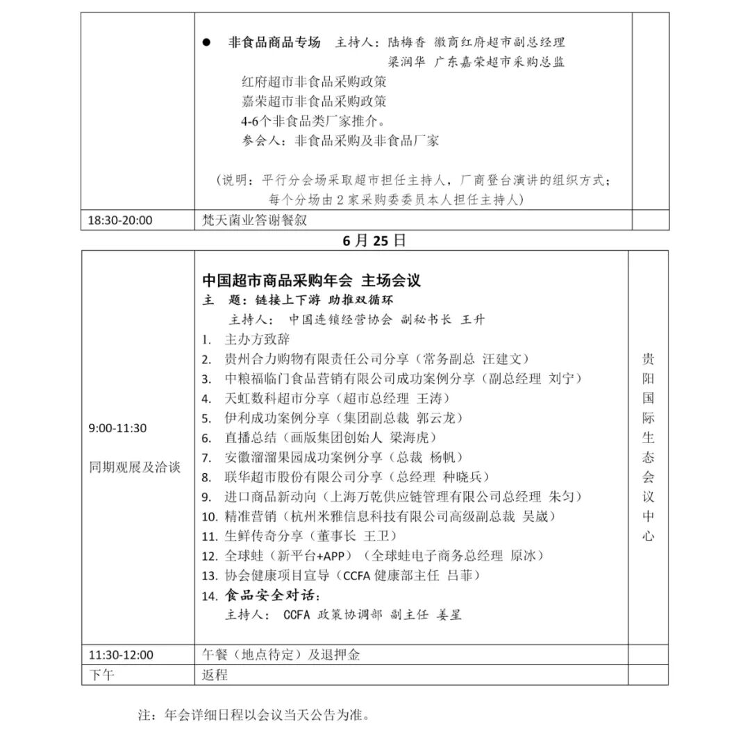 由中国连锁经营协会主办的2021中国超市商品采购年会定于6月23日至25日在贵州省贵阳市举办。自2015年起,采购年会已连续举办7届,是零售行业最高级别的年度性商品采购活动。本届采购年会将汇聚全国众多超市、经销商及新兴零售领域的约1000位采购精英,以及协会采购委员会推荐的百余个优质厂商,共同围绕年会主题展开研讨、分享成功案例、洽商上下游供需合作。本届年会除继续秉承生鲜、食品及非食三大传统专场论坛优势外,还将设置“黔菌出山”专题主场研讨,通过唱响“黔菌”品牌,推动贵州食用菌走向全国,达成巩固和拓展脱贫攻坚成果,助力乡村振兴之期望。组织逐年持续扩展规模的生鲜、食品及非食三大类别优质商品现场展示与洽商活动。