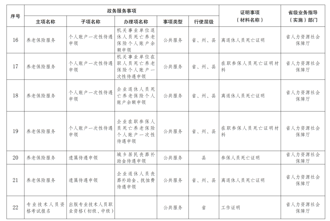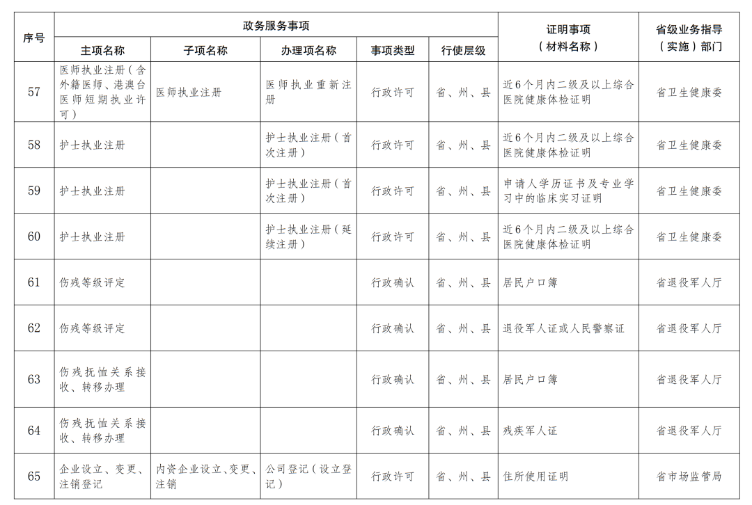 (一)制定公布清单,积极稳妥有序推进。各地各部门要依托全省网上政务服务平台,按照此次制定公布的第一批104项实行告知承诺制的证明事项清单(附件1),细化任务分工,全面落实证明事项告知承诺制。省直有关部门要严格按照证明事项应当有法律、法规或者国务院决定依据的规定,聚焦户籍管理、市场主体准营、资格考试、社会保险、社会救助、健康体检、法律服务等方面,围绕企业和群众生产生活密切相关、使用频次较高或者获取难度较大的证明事项,进一步拓展可实行告知承诺制的证明事项,由省司法厅统一审核后按程序报请公布并动态调整。(责任单位:各州、市人民政府,省直有关部门;完成时限:2021年12月底)