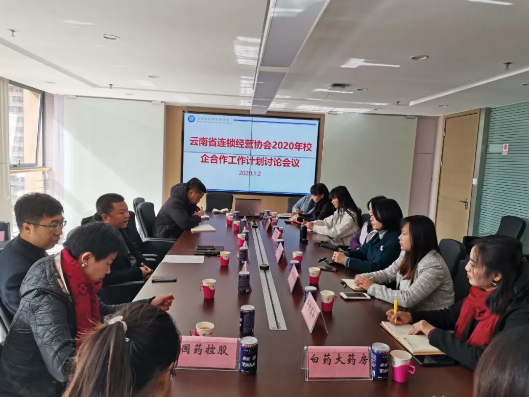 2020年,是极不平凡的一年,是注定载入史册的一年。2020年,作为全省零售业企业“娘家人”的云南省连锁经营协会,始终坚持“服务社会、服务行业、服务企业”的办会宗旨,以“善于学习、开放包容、精益求精、只争朝夕”的组织精神,“负责、用心、真诚、高效”的工作风格,切实做好会员服务工作,积极促进云南省商贸服务业的发展,带动社会消费品零售总额的增长,助力打造世界一流“绿色食品牌”。一是重视党建工作,拥护党的领导;二是加强政企沟通,反映企业诉求;三是搭建学习平台,促进经营管理;四是走访会员企业,倾听企业心声;五是承接政府项目,助力脱贫攻坚;六是组织抗疫行动,承担社会责任;七是整合社会资源,拓宽合作渠道;八是注重对外宣传,提升协会形象。受到了广大会员单位及企业的充分肯定和高度评价,引起了云南网、《云南日报》、《春城晚报》、《云南经济日报》、《云南政协报》、《云南信息报》、云南电视台、昆明信息港等众多主流媒体及云南省人民政府、云南省民政厅、云南省商务厅等多家官方网站的广泛关注和报道。▲1月2日下午,协会组织召开了2020年校企合作工作计划讨论会议,4家院校会员、9家企业会员参加了会议。![]()