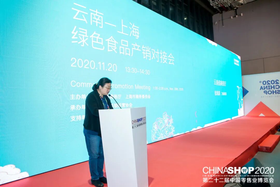 11月20日下午,由云南省商务厅、上海市商务委员会主办,云南省连锁经营协会承办,上海消费扶贫联盟支持的“云南—上海绿色食品产销对接会”在国家会展中心(上海)圆满举办,会议由云南省商务厅副处长刘代宇主持。![]()