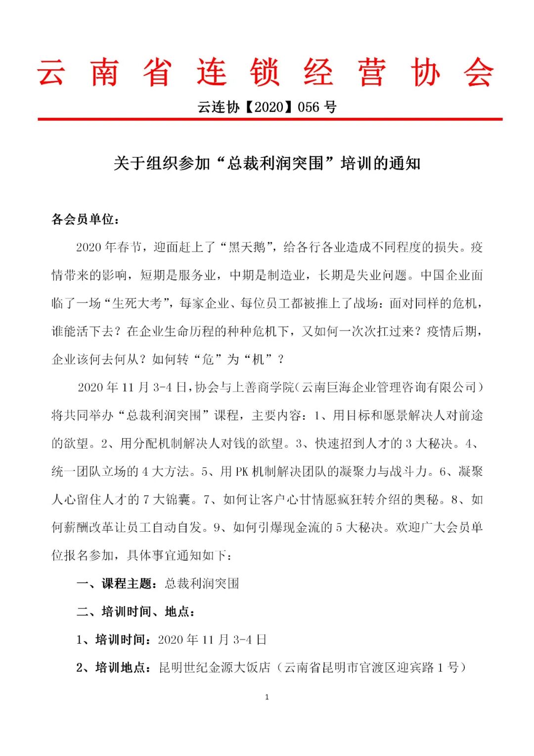 关于组织参加“总裁利润突围”培训的通知