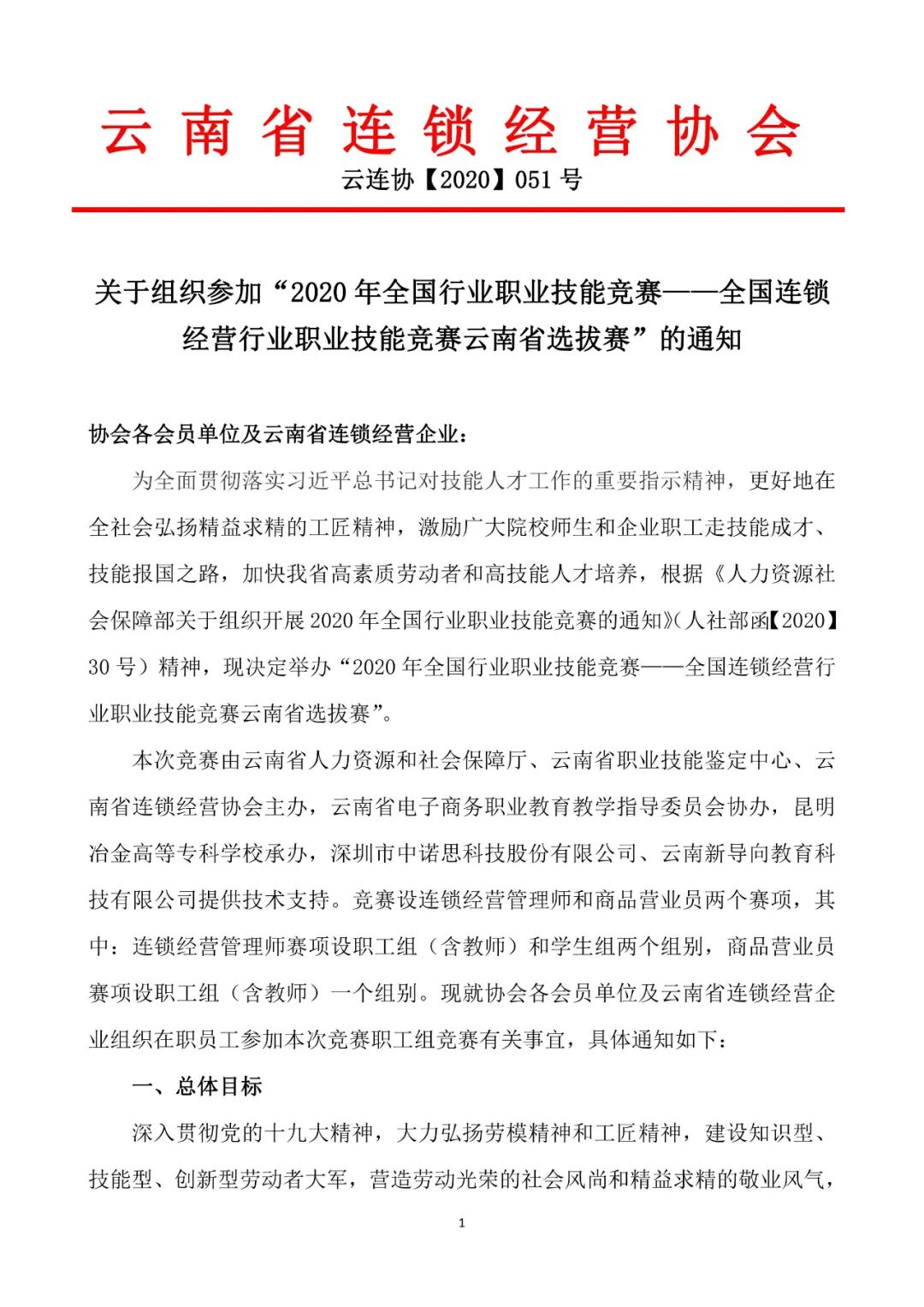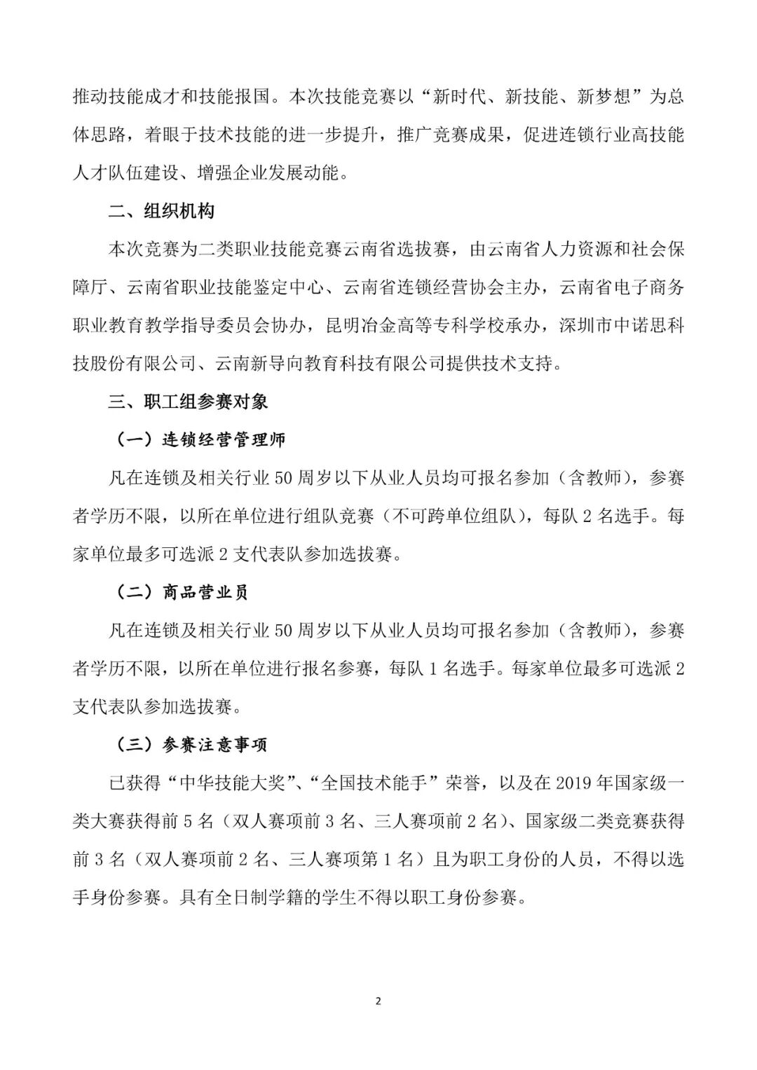 关于组织参加“2020年全国行业职业技能竞赛——全国连锁经营行业职业技能竞赛云南省选拔赛”的通知
